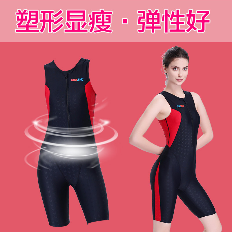 专业鲨鱼皮连体泳衣女款保守高级感平角无袖竞速游泳装游泳馆专用