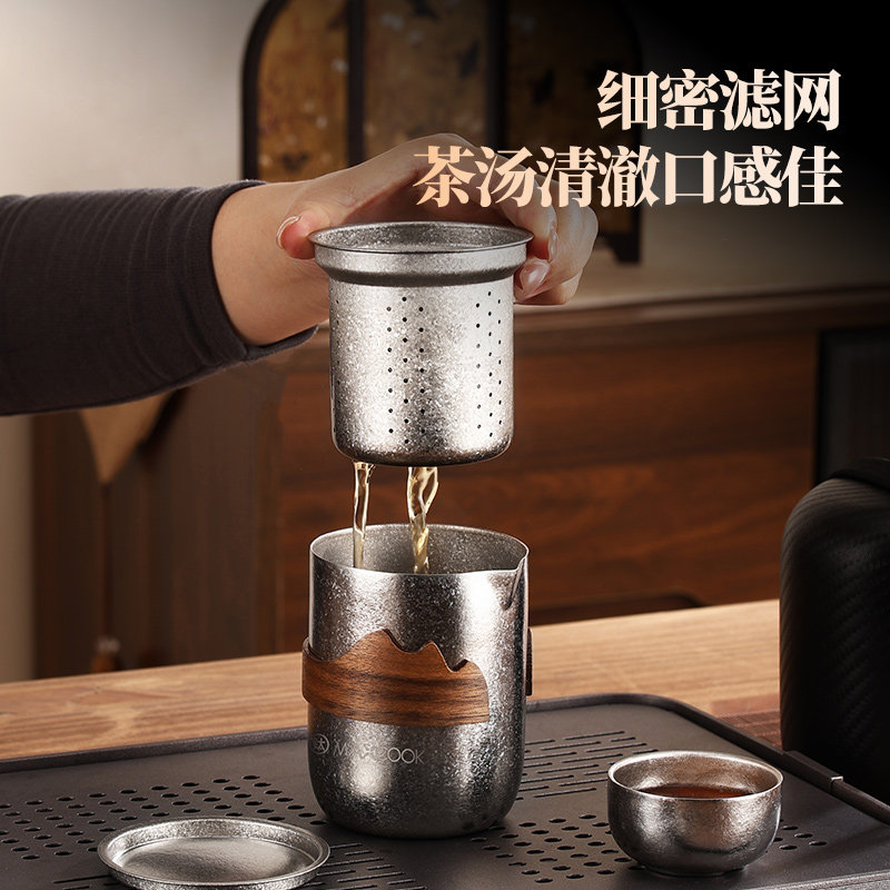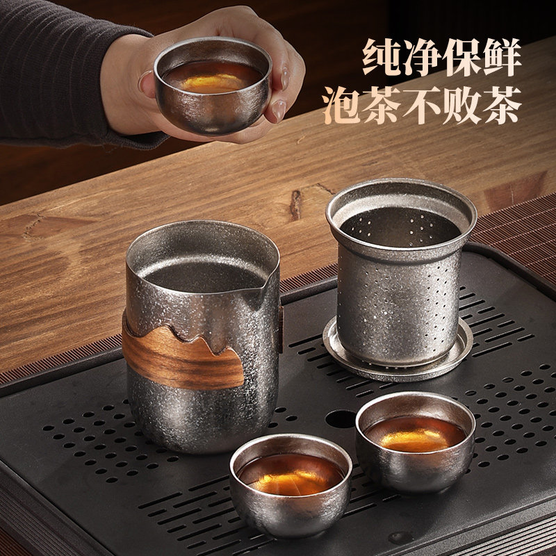 纯钛茶杯旅行便携茶具套装快客杯户外泡茶功夫茶钛合金茶具杯茶壶