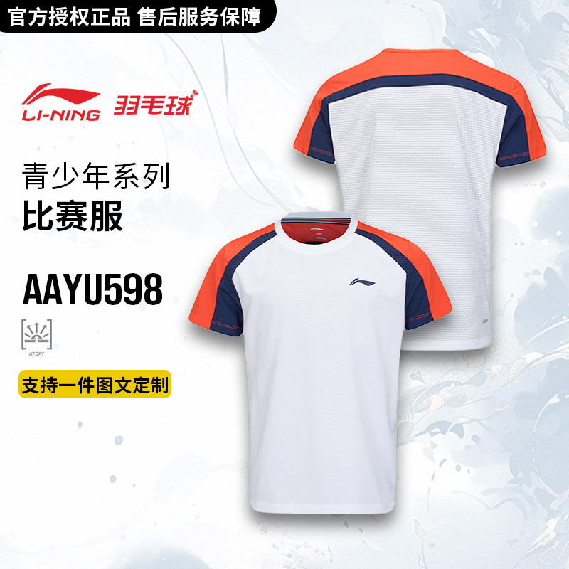官方授权正品李宁羽毛球服青少年男女童速干比赛服短袖训练服上衣
