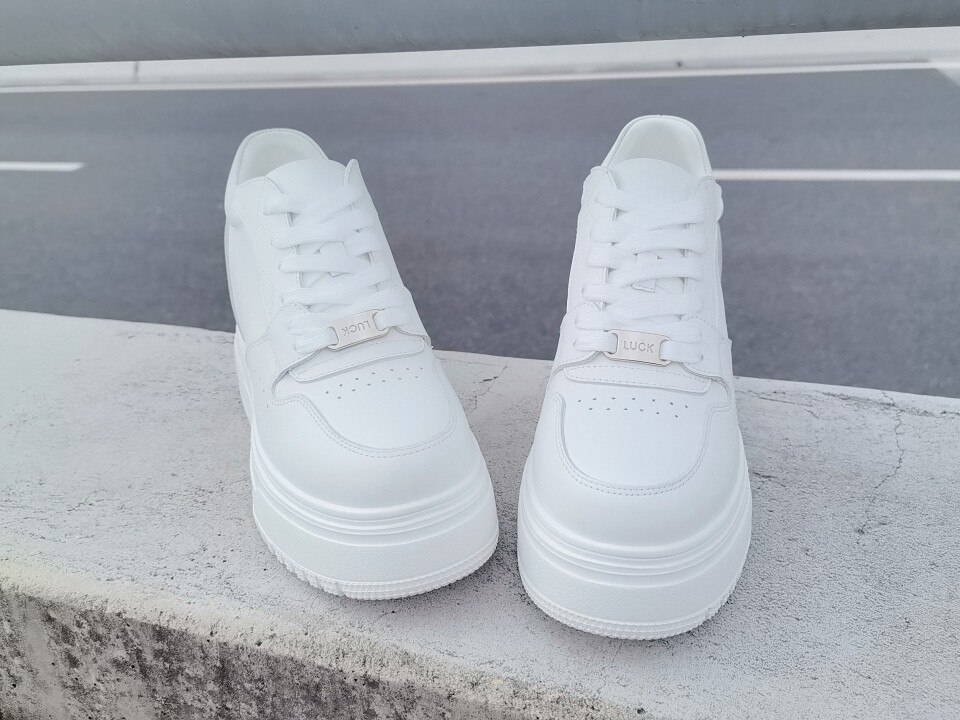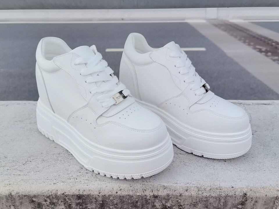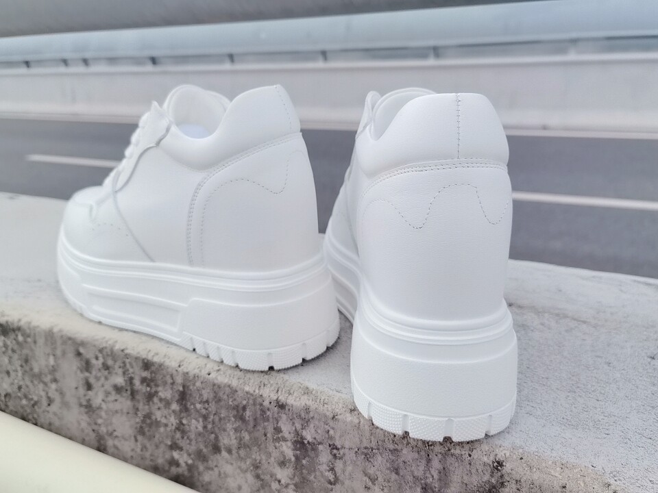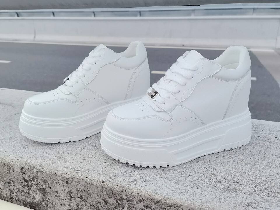 2026春秋新款韩版厚底内增高小白鞋女真皮系带显脚小 跟高10厘米