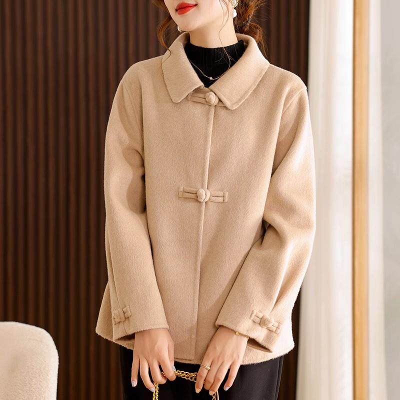 年轻妈妈秋装短款双面呢外套2025新款中老年女装春秋羊毛呢子大衣