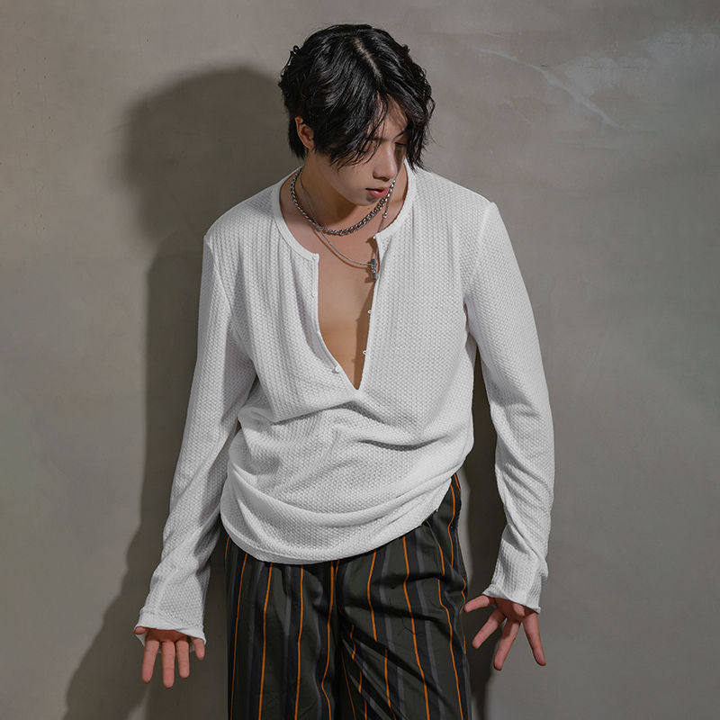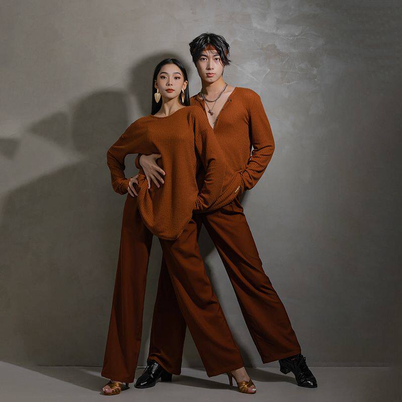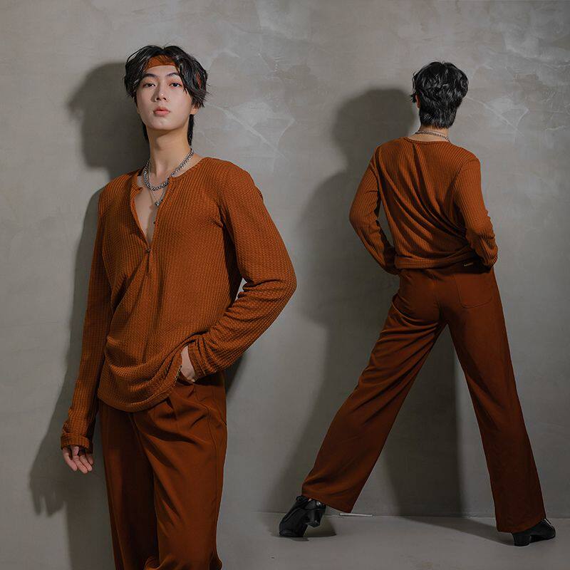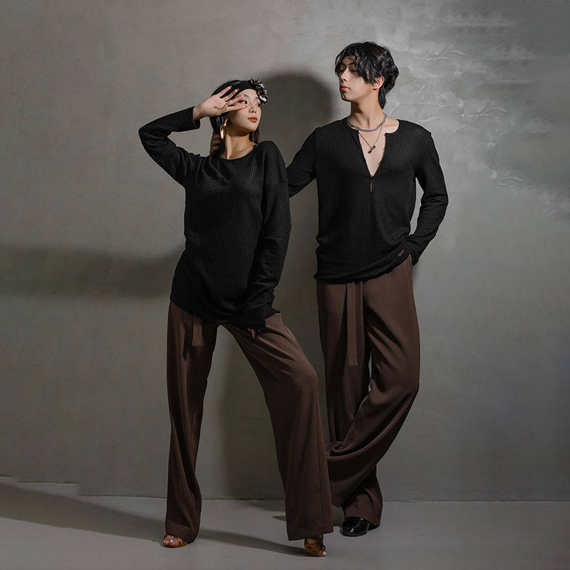 新款拉丁舞服新品男成人摩登舞国标舞服针织基础练功上衣YS534
