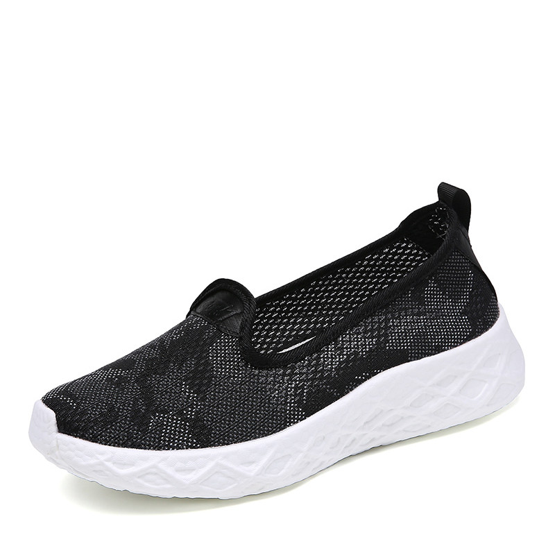 夏季透气妈妈鞋一脚蹬软底舒适黑色网面鞋女轻便薄款浅口镂空女鞋