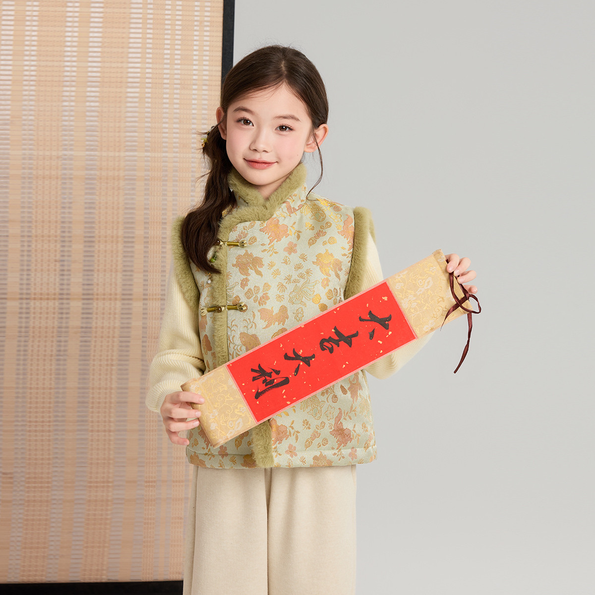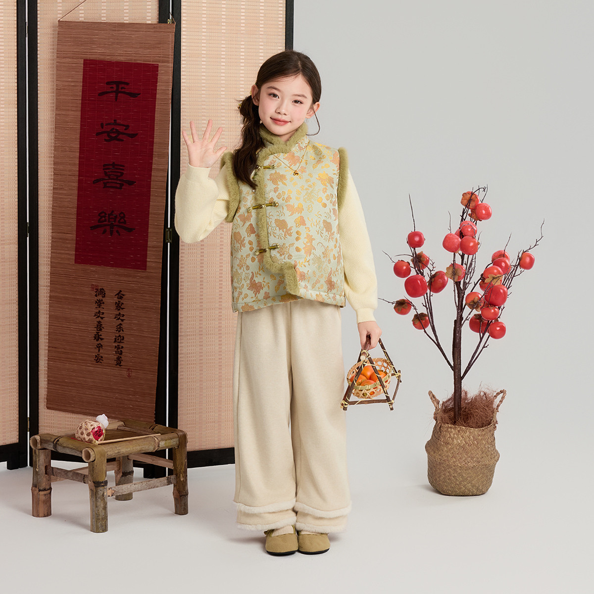 布丁哈鲁冬装女童童装洋气上衣2026秋冬季新款儿童国风金鱼马甲