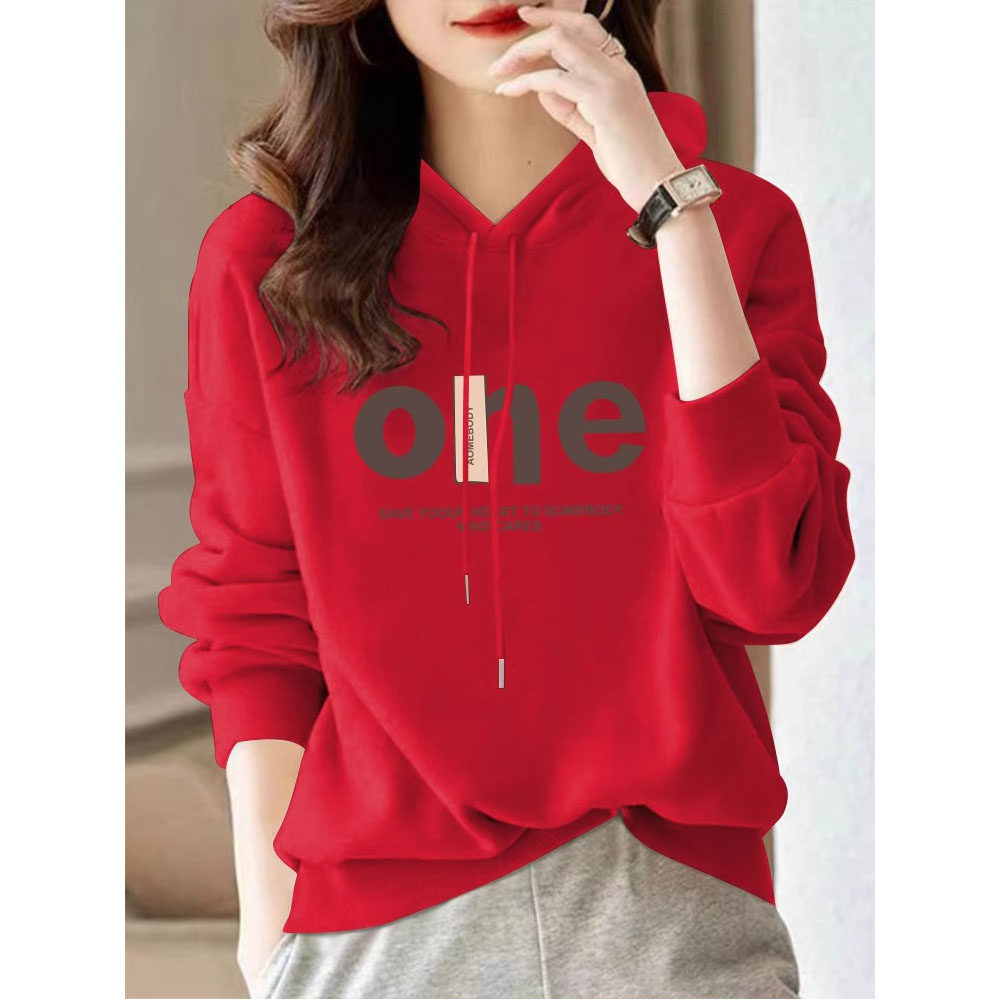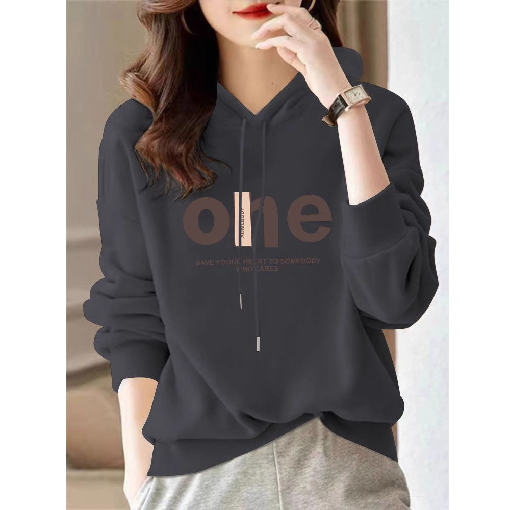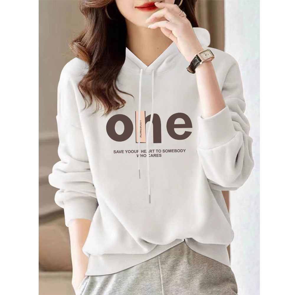 山东即墨纯棉连帽卫衣女洋气简约字母高级感降温加绒加厚休闲外套
