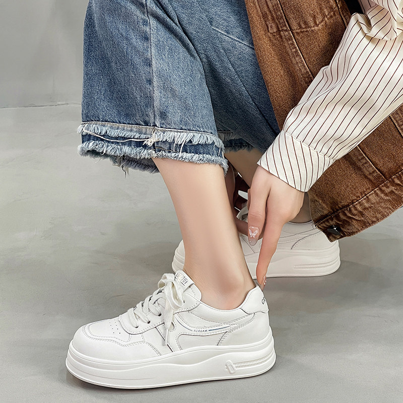 轻便不累脚小白鞋女款2026春季新款真皮厚底休闲板鞋鞋子女鞋百搭