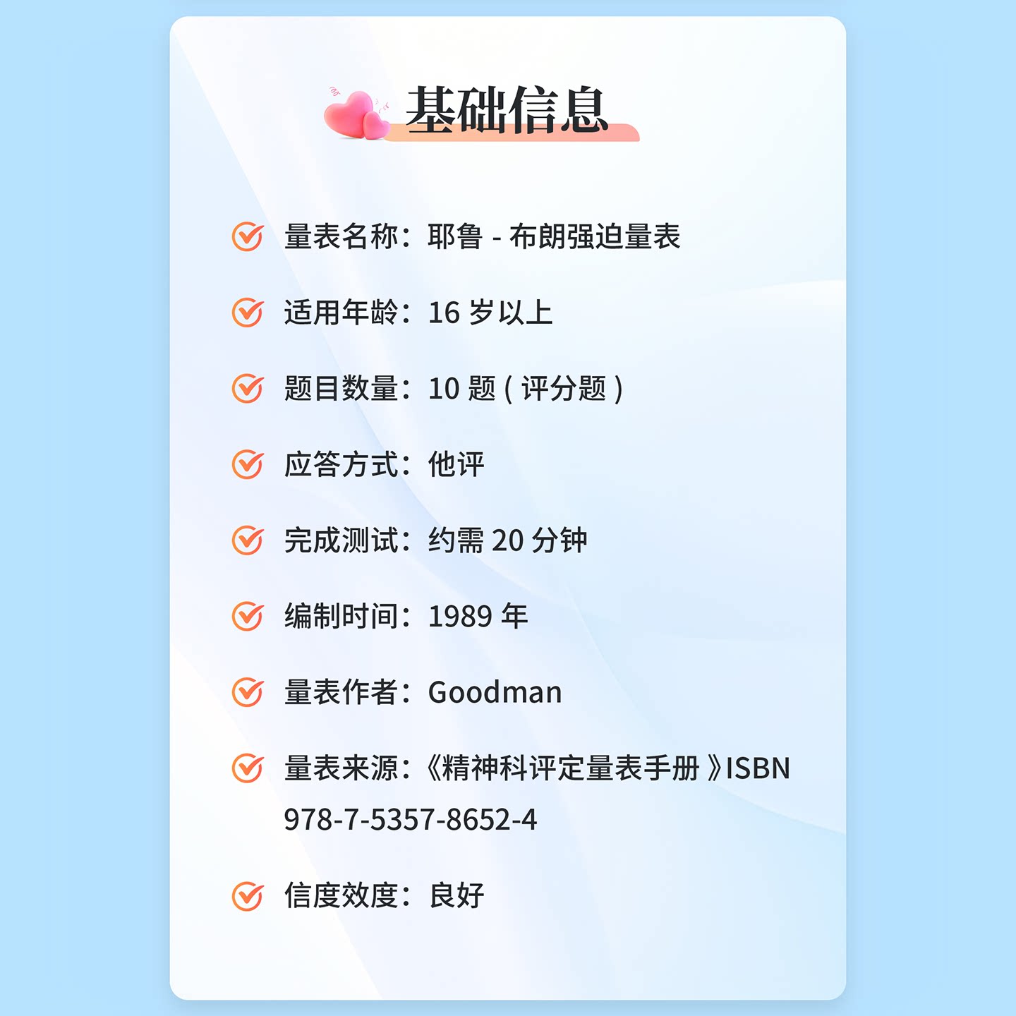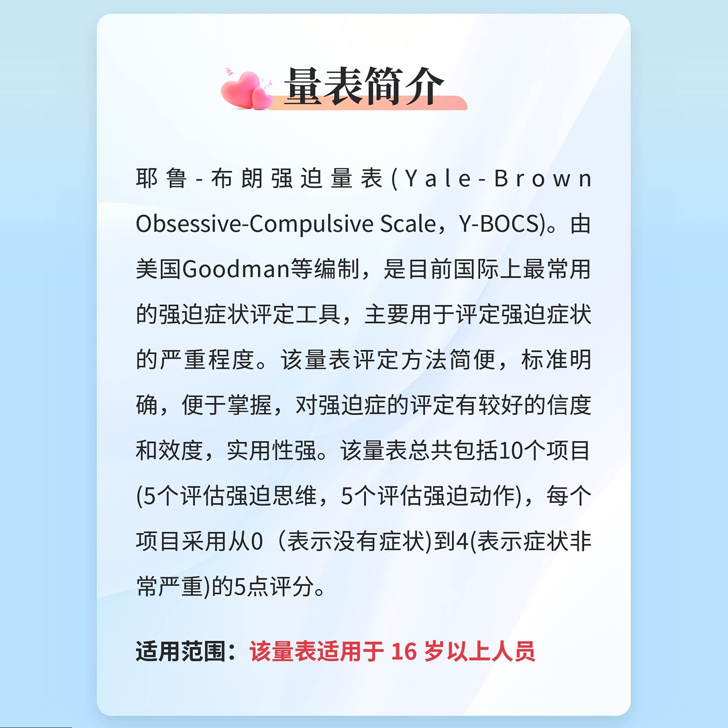 耶鲁布朗强迫量表Y-BOCS心理健康测评在线测试强迫症状情绪评定表