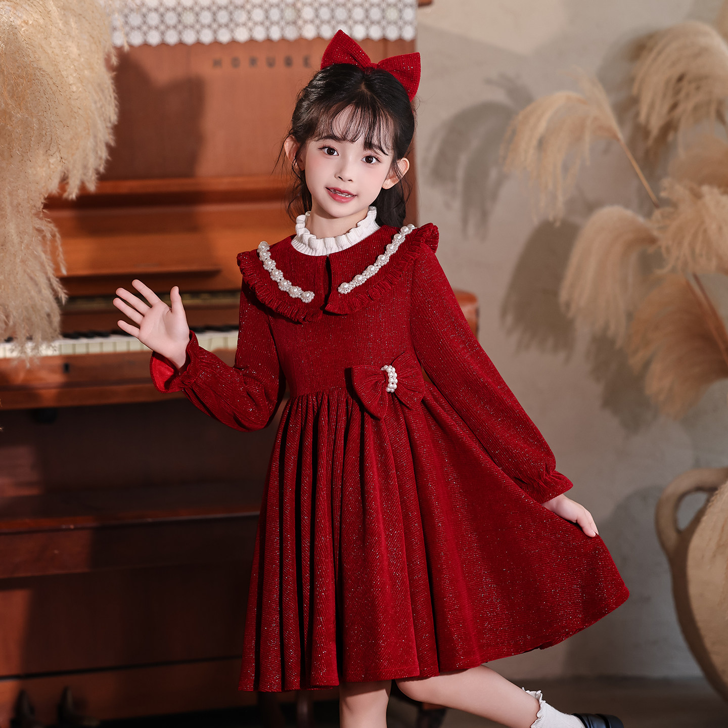 公主裙女童2026冬装新款儿童连衣裙冬新年服装红色过年衣服冬裙子