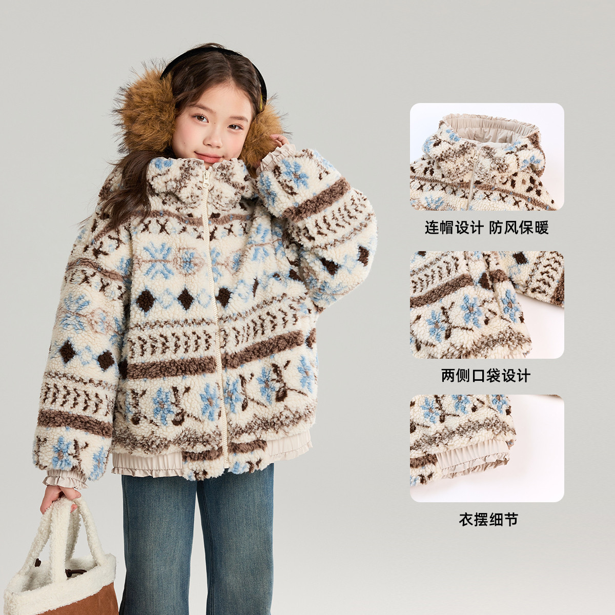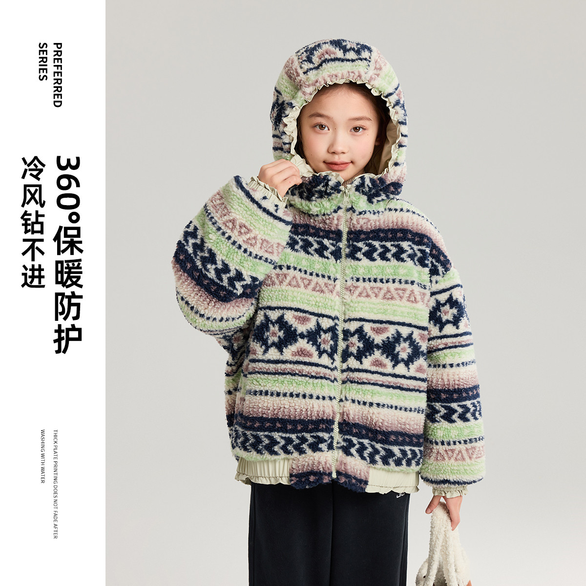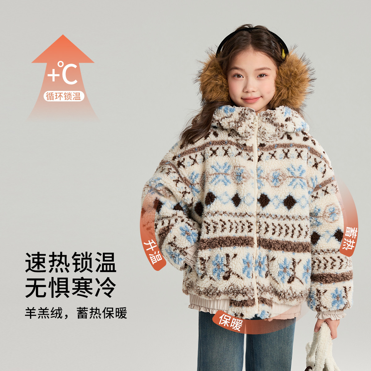 布丁哈鲁冬装女童童装上衣2026秋冬季新款儿童费尔岛羊羔外套