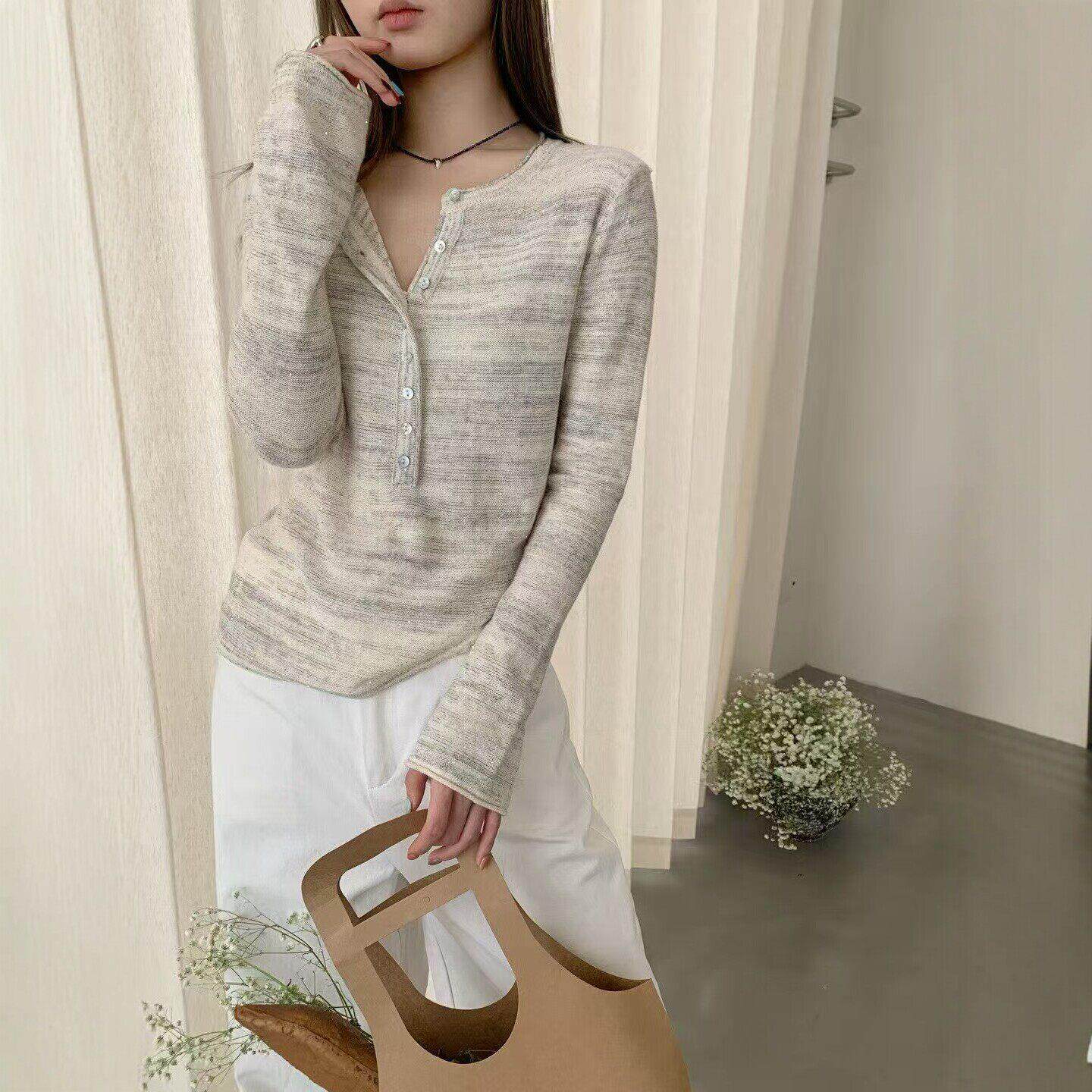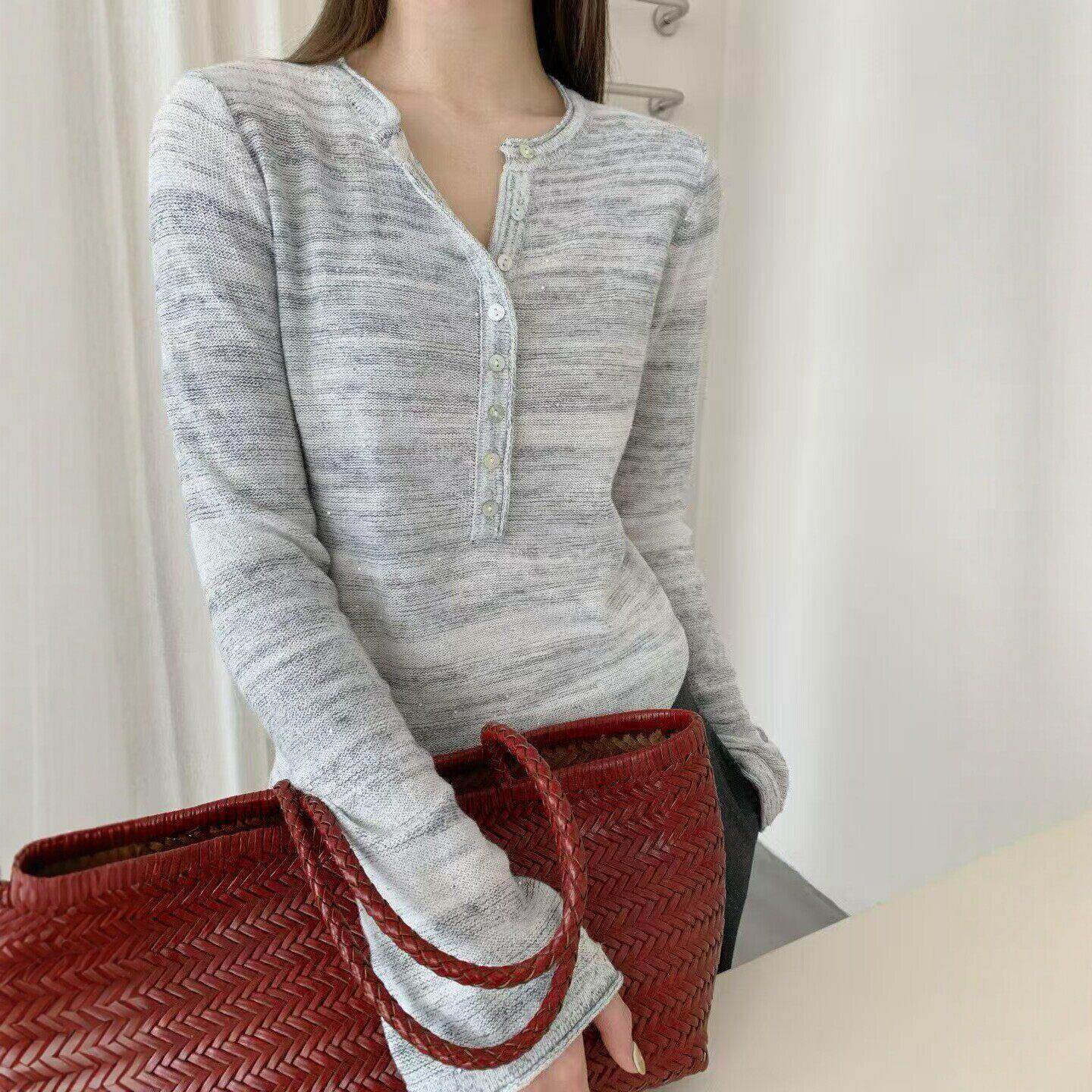 春装女款2026年新款高级感独特漂亮薄款针织衫打底衫女内搭上衣