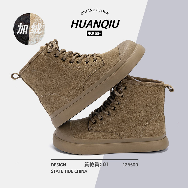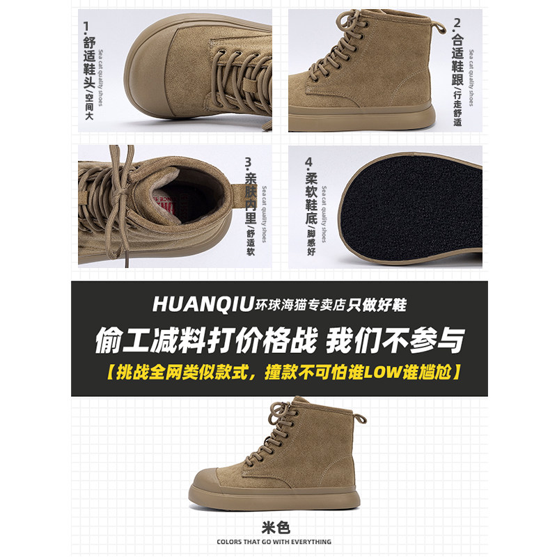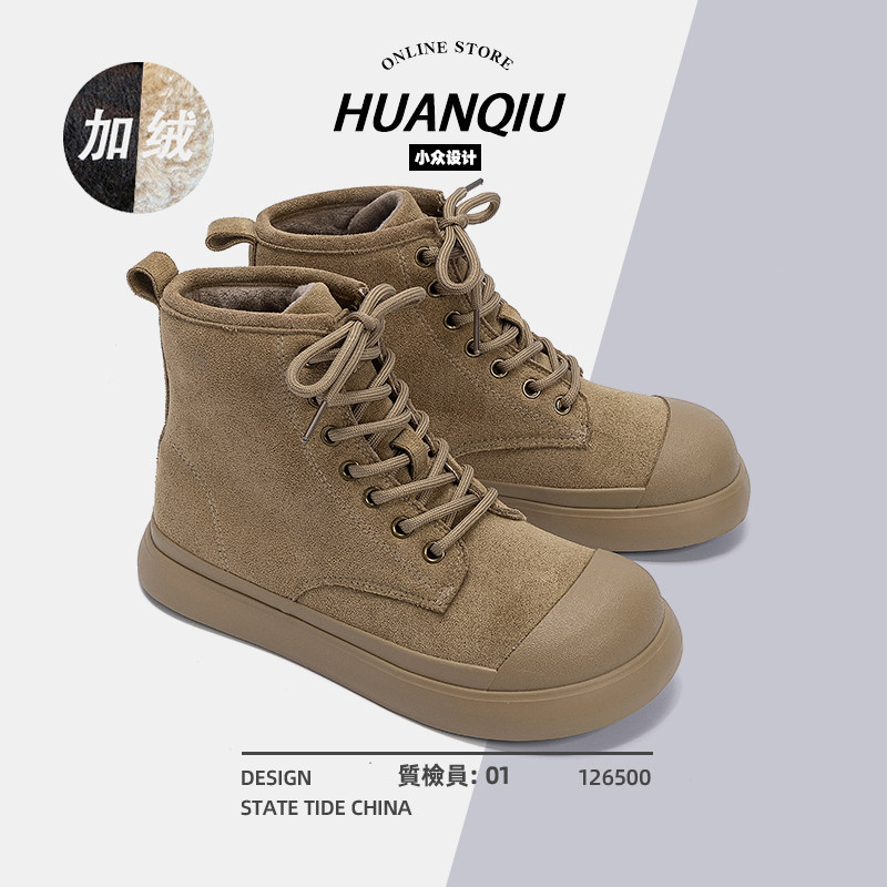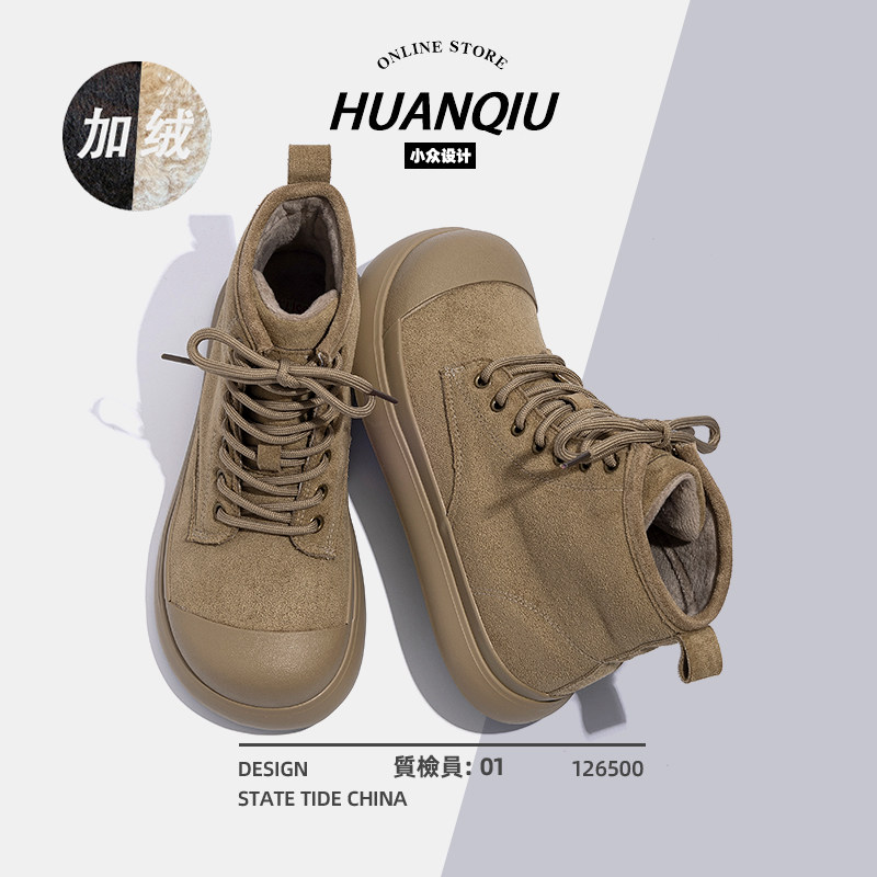 环球加绒马丁靴女款2025新款冬季百搭保暖棉靴时尚潮流高帮二棉鞋