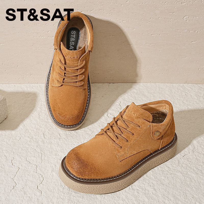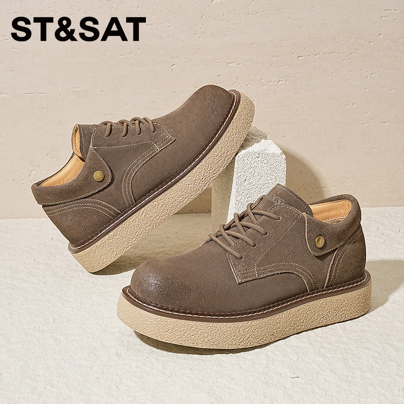 星期六2025冬季男鞋厚底加绒德比鞋工装风系带休闲鞋增高通勤板鞋