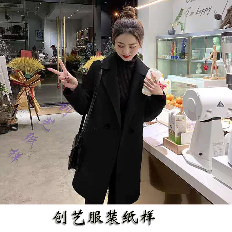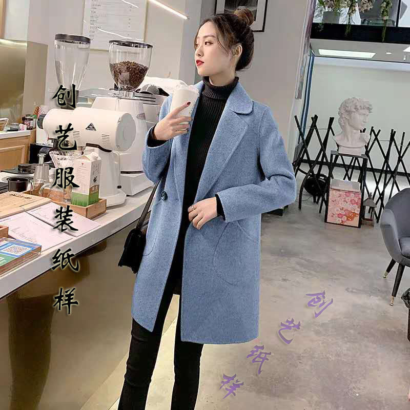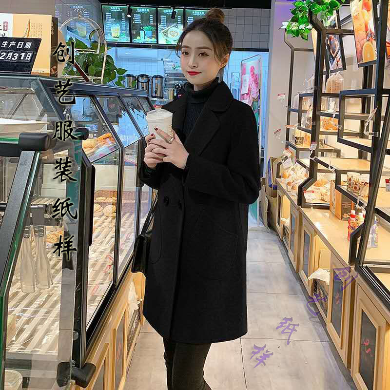 裁剪图纸B123双面小个子毛呢子外套女中长款韩版秋冬短款大衣纸样