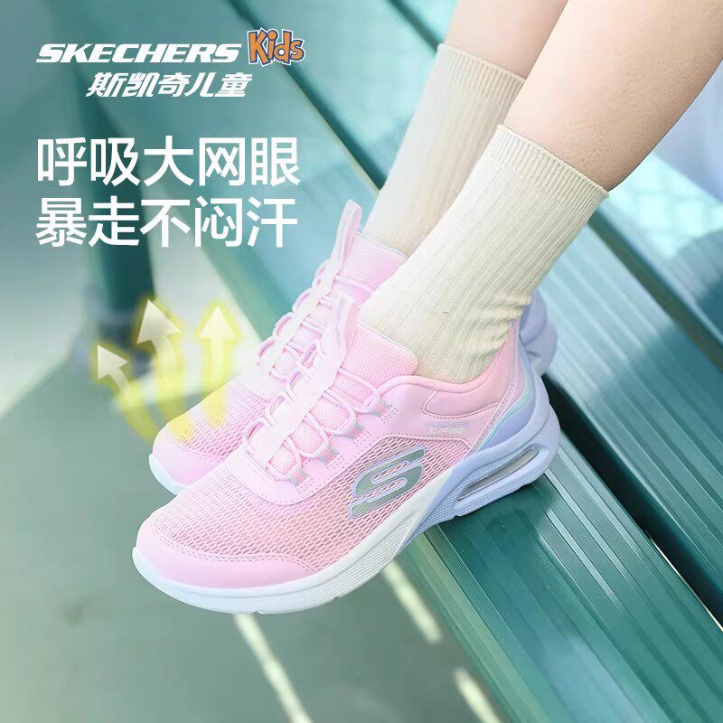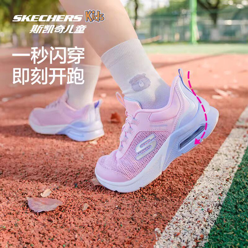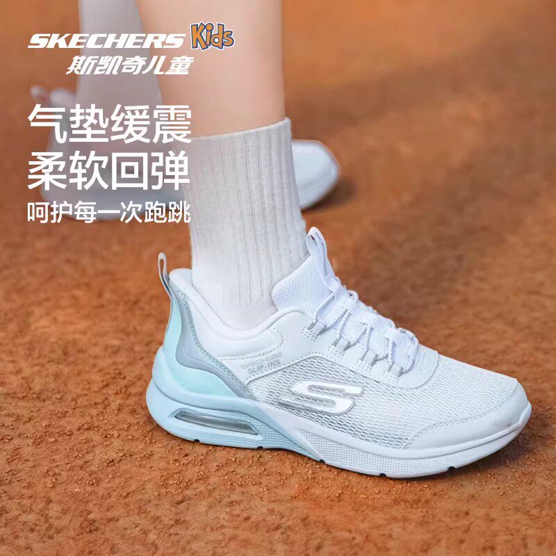 Skechers斯凯奇儿童闪穿鞋春夏一脚蹬透气跑鞋女童轻便减震运动鞋