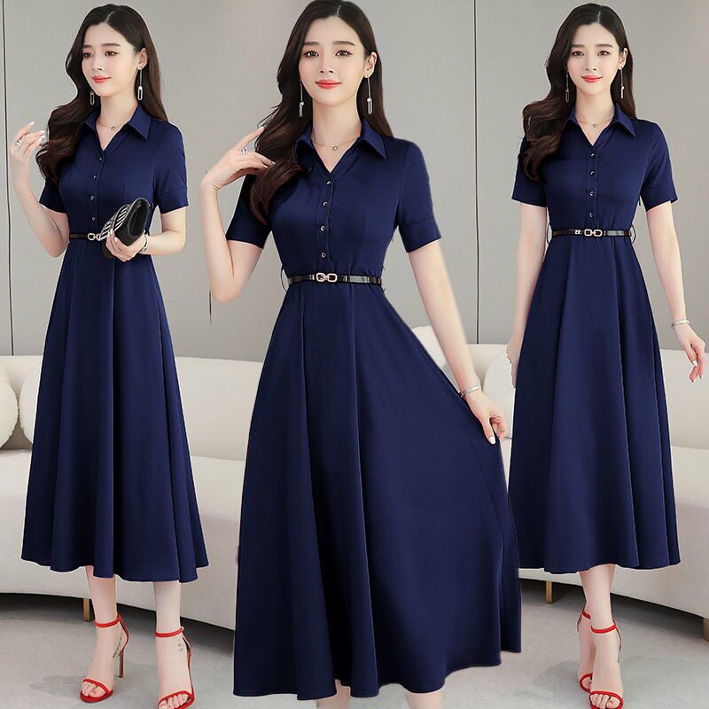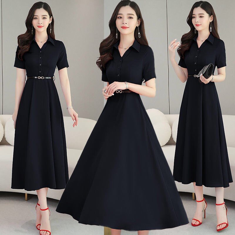 大码胖mm连衣裙polo领气质名媛高端小个子夏季梨型身材a字裙子女