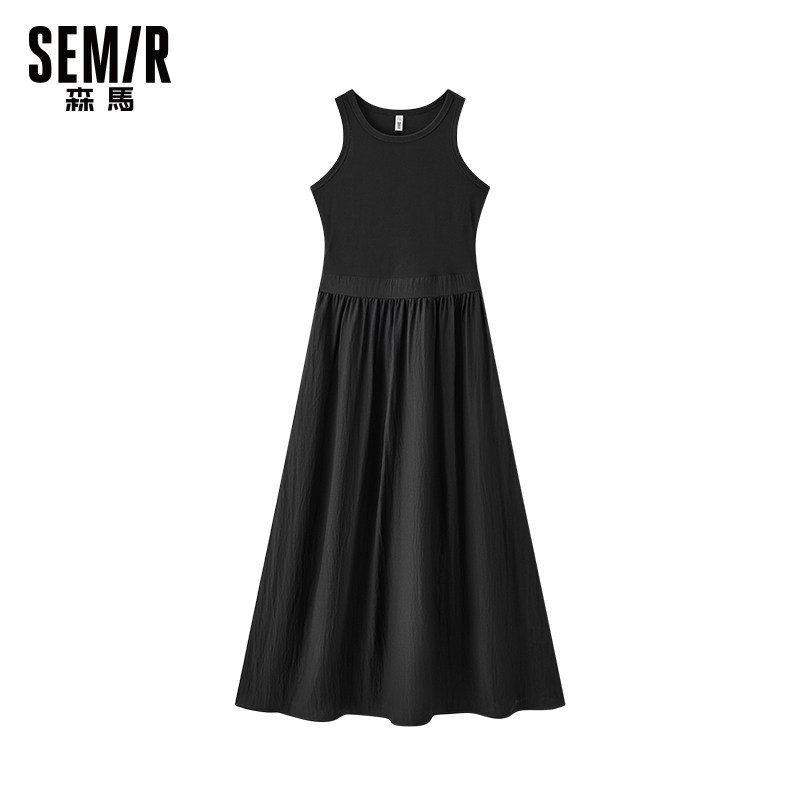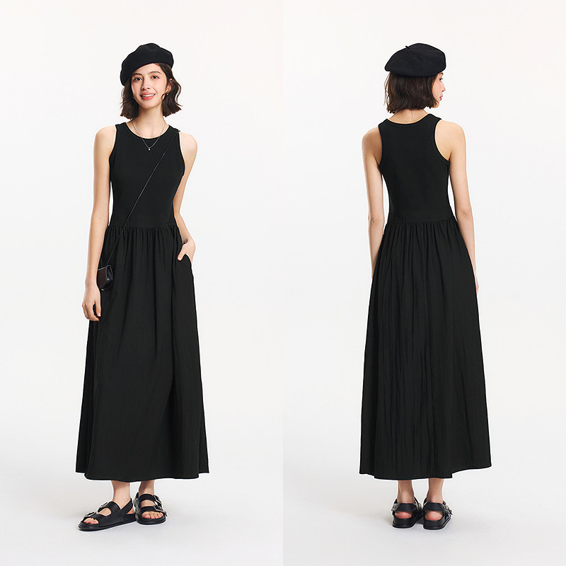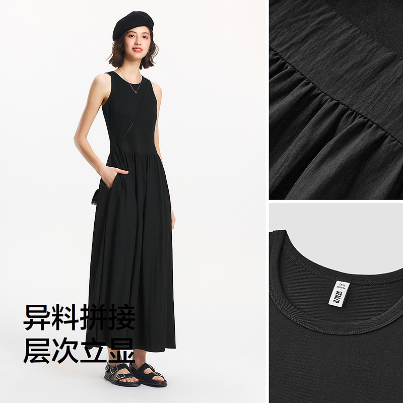 森马连衣裙女修身显瘦小黑裙2026夏季新款裙子小个子圆领无袖长裙