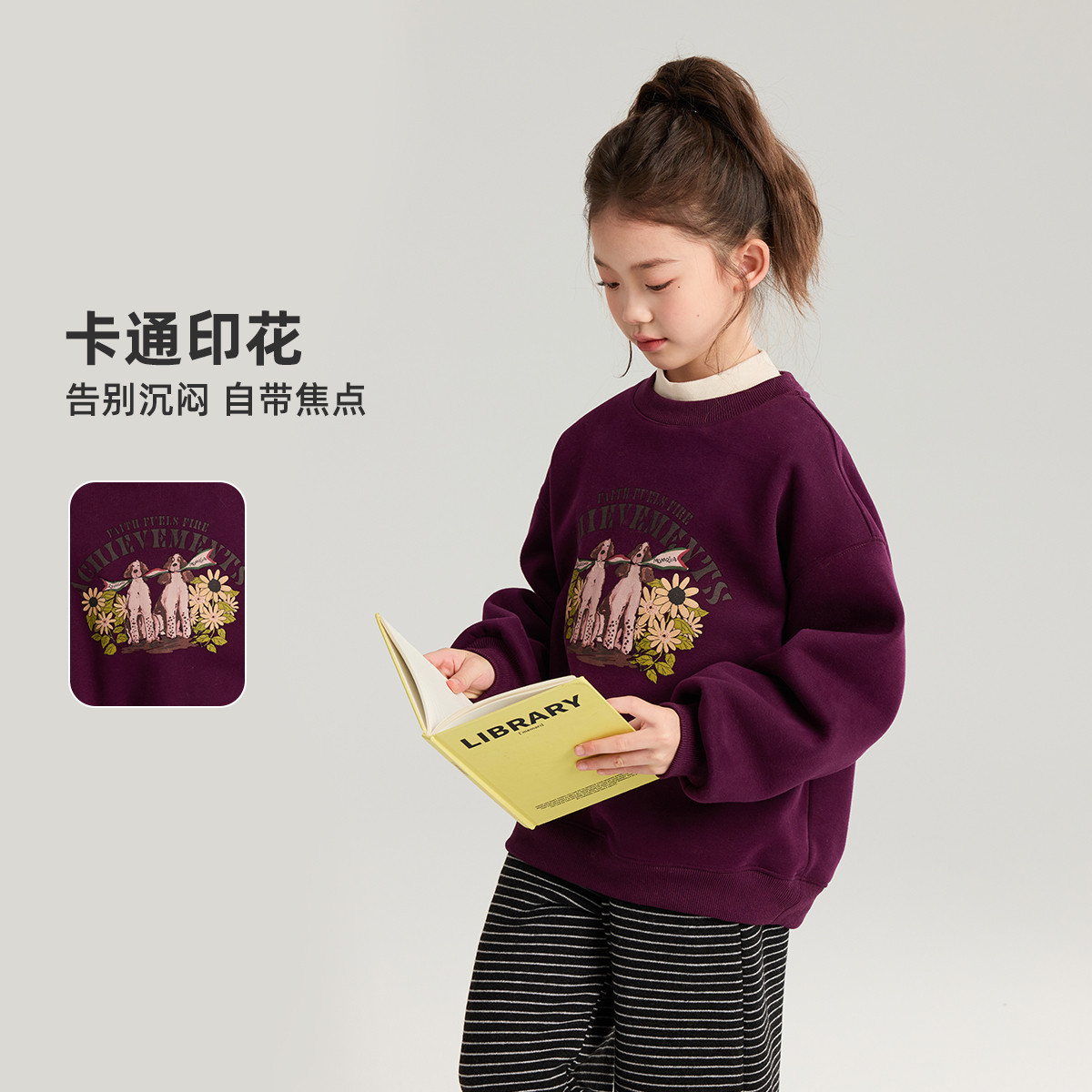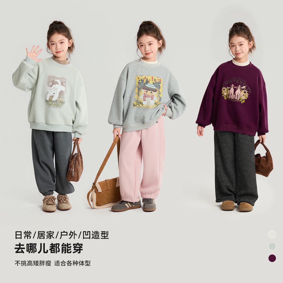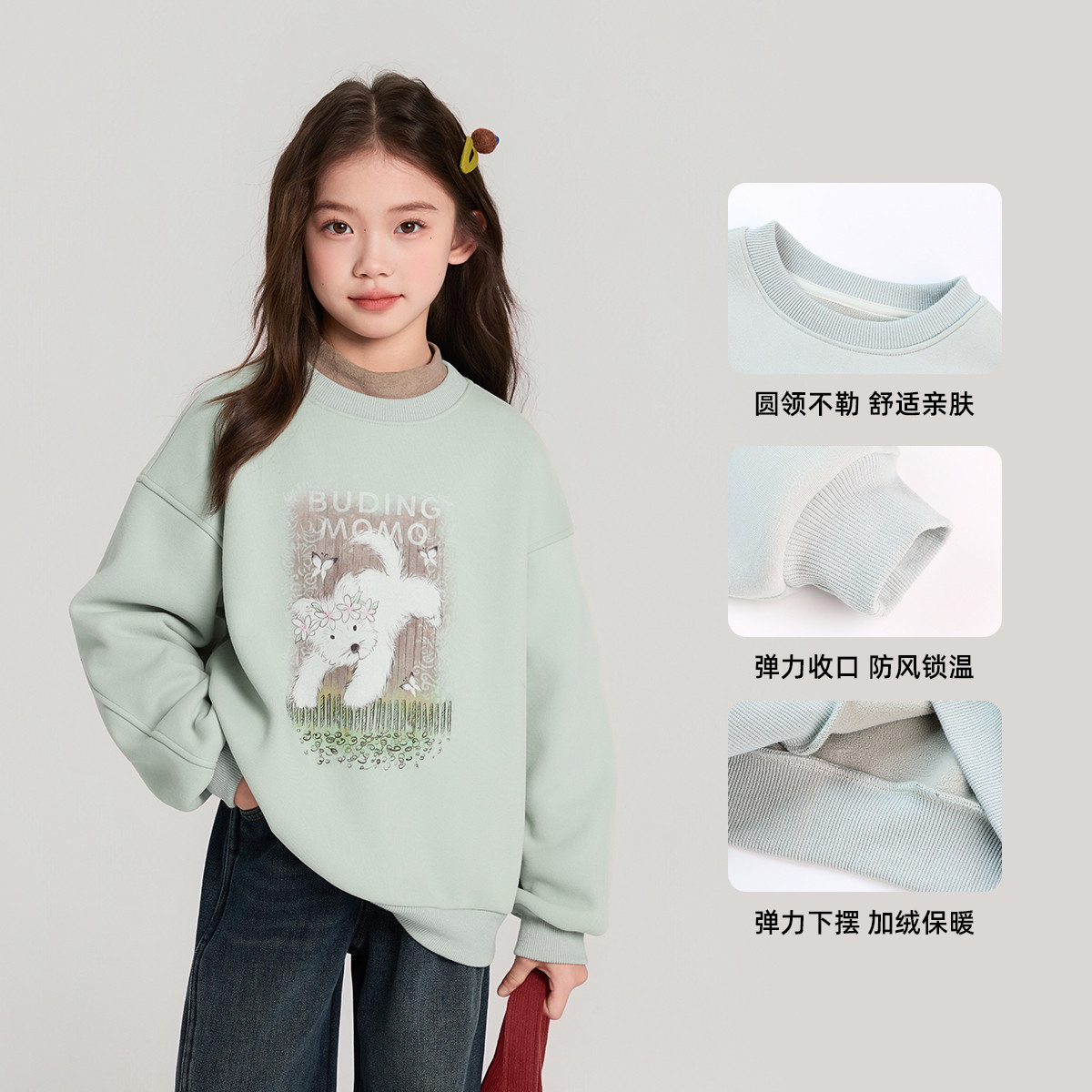 布丁哈鲁冬装女童童装加绒上衣2026秋冬季新款儿童卡通印花卫衣