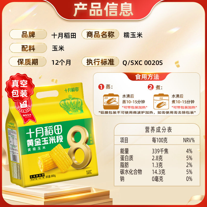 十月稻田黄金玉米段800g黄糯玉米东北黏糯玉米低脂