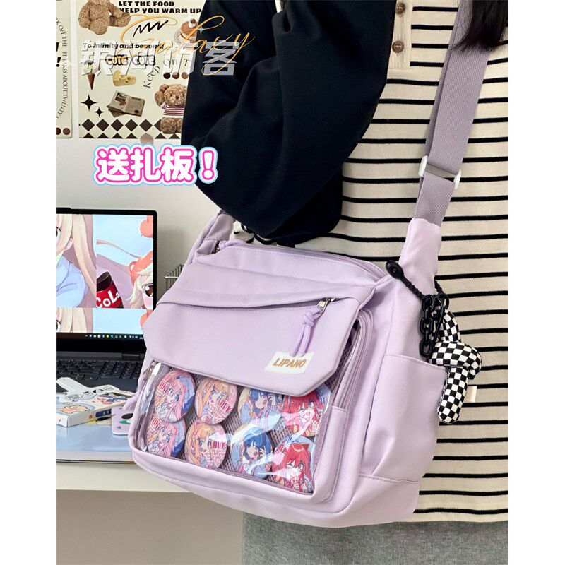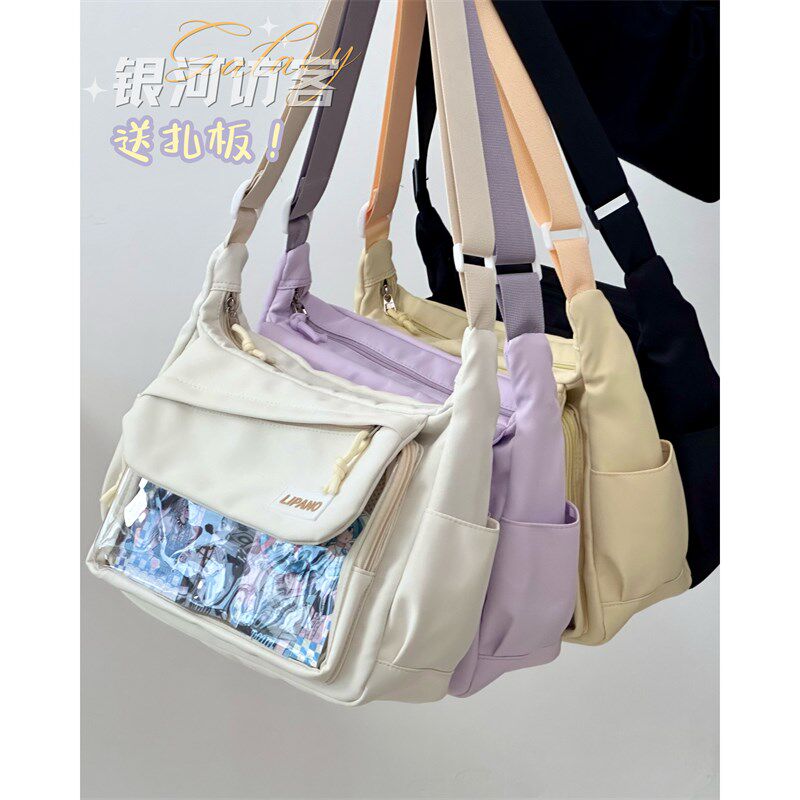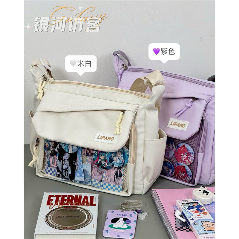 大容量百搭学生装书单肩斜挎包女 日系学院少女吧唧透明娃包痛包