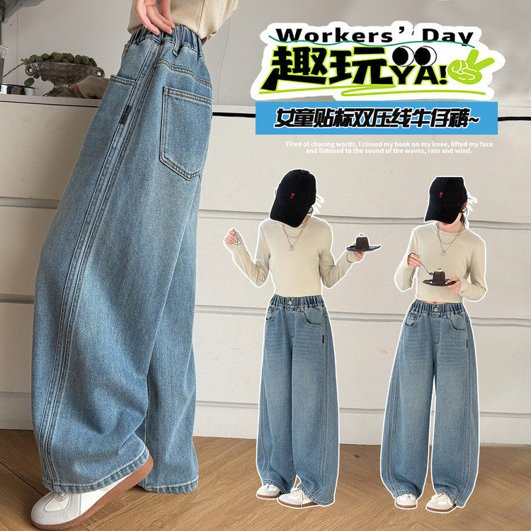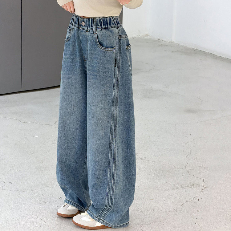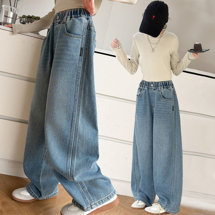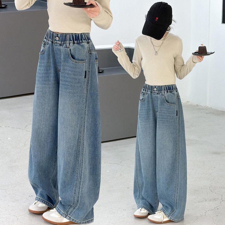 牛仔裤初中生女孩春装2026新款儿童阔腿裤女童超好看韩系裤子春季