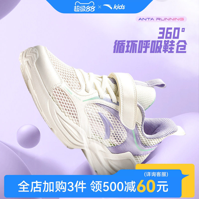 安踏儿童运动鞋女童鞋子2026新款春夏网面跑步鞋透气跑鞋儿童鞋