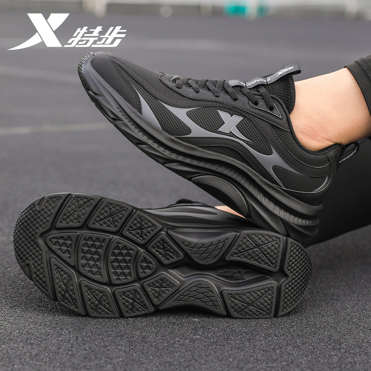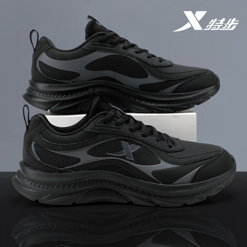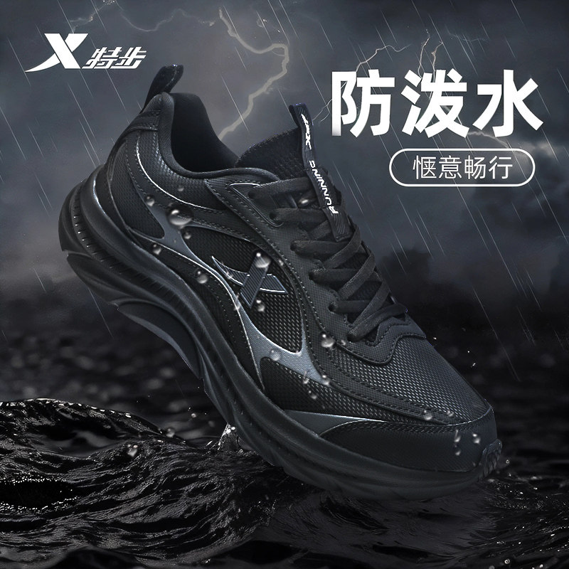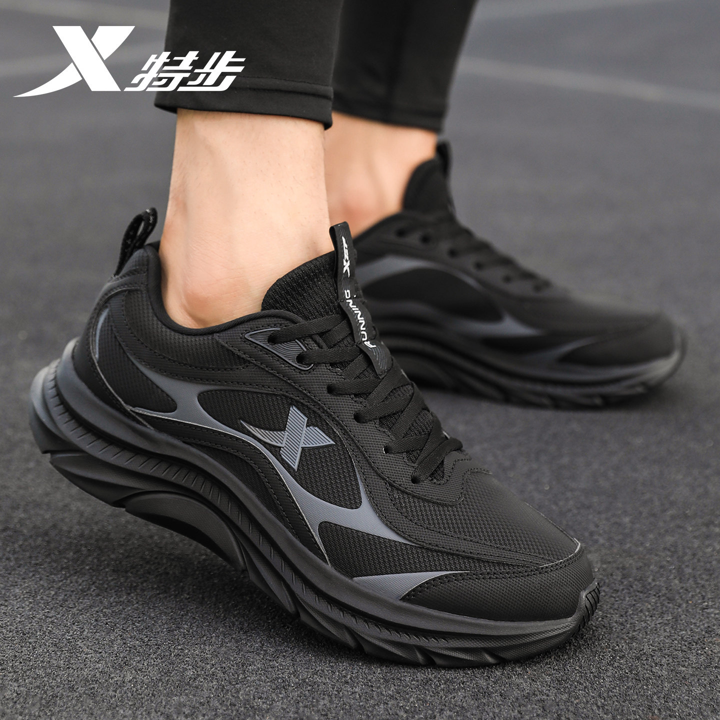 特步皮面男鞋防水跑步鞋春季2026新款正品休闲鞋子黑色运动鞋男款