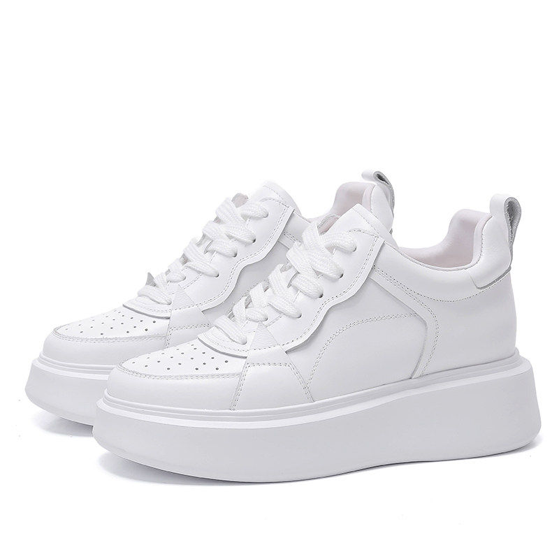 8公分内增高小白鞋真皮春夏季透气显脚小松糕厚底女鞋轻便小个子