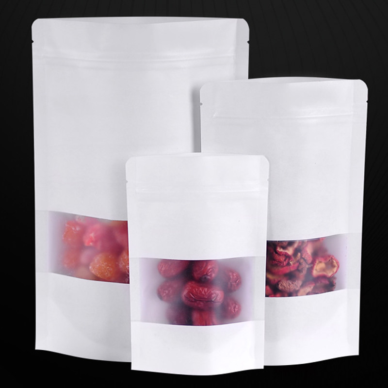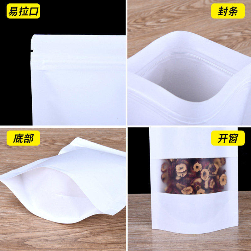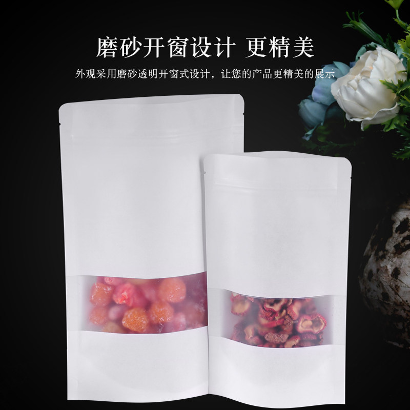 开窗磨砂白色牛皮纸袋定制密封包装袋茶叶零食坚果自立自封食品袋