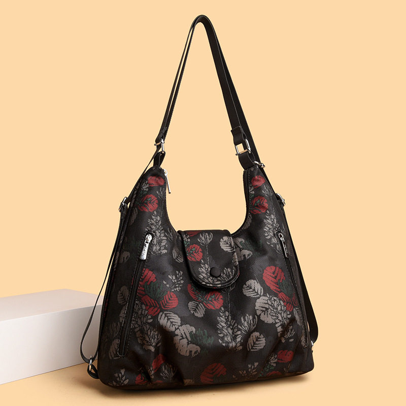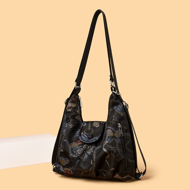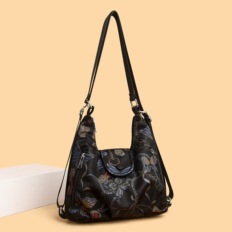 女士双肩包2025新款中老年印花牛津布多功能旅行单肩斜挎包大容量