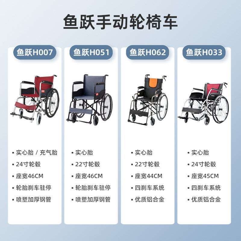 鱼跃轮椅H007轻便折叠小型老人专用多功能瘫痪身心障碍代步轮配件