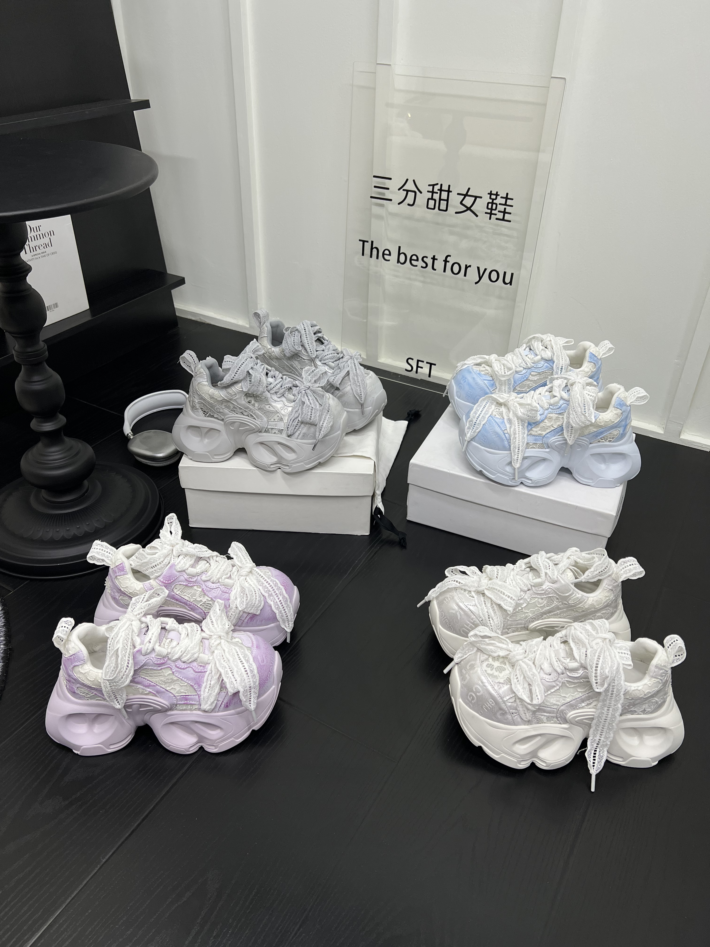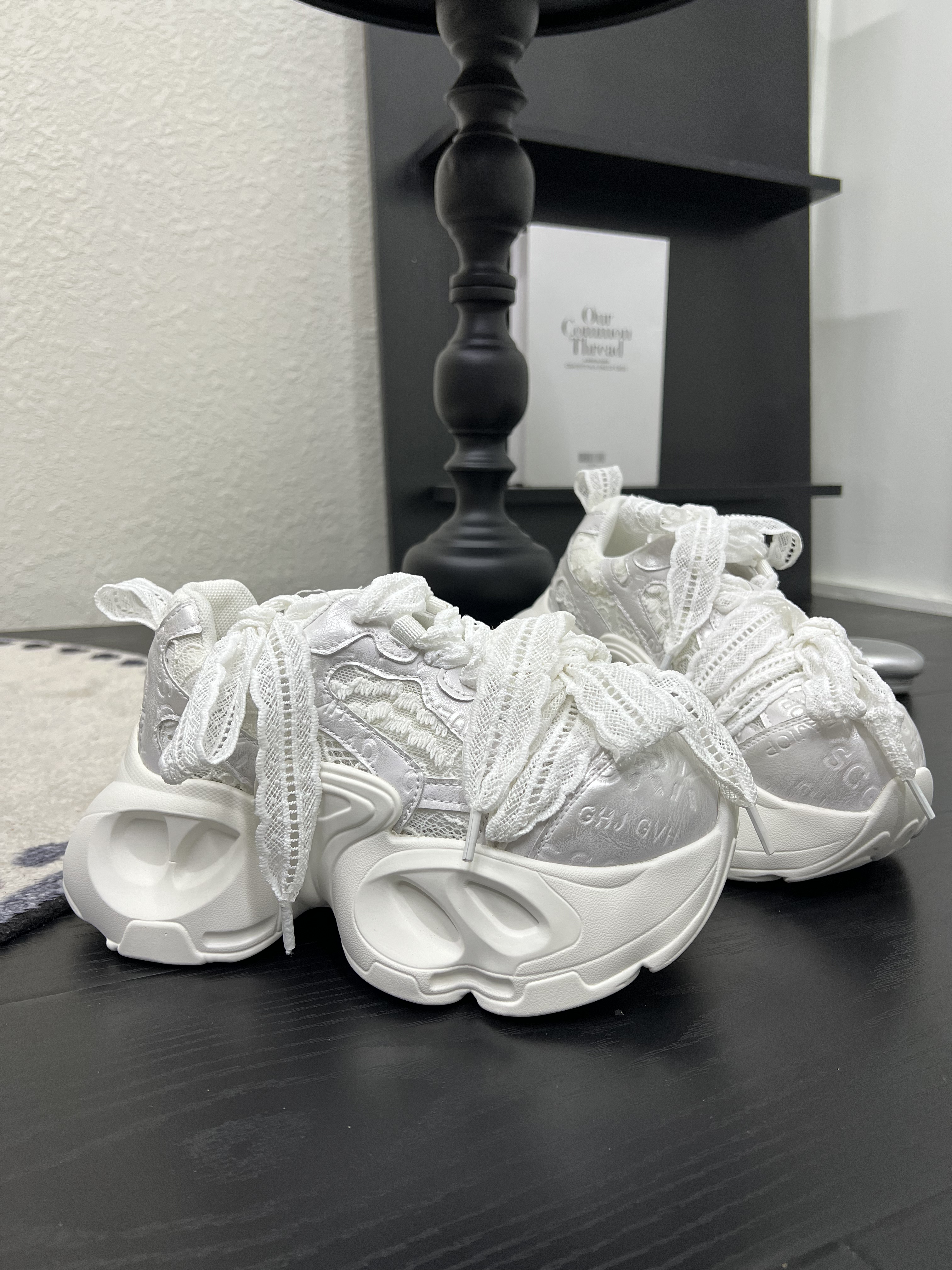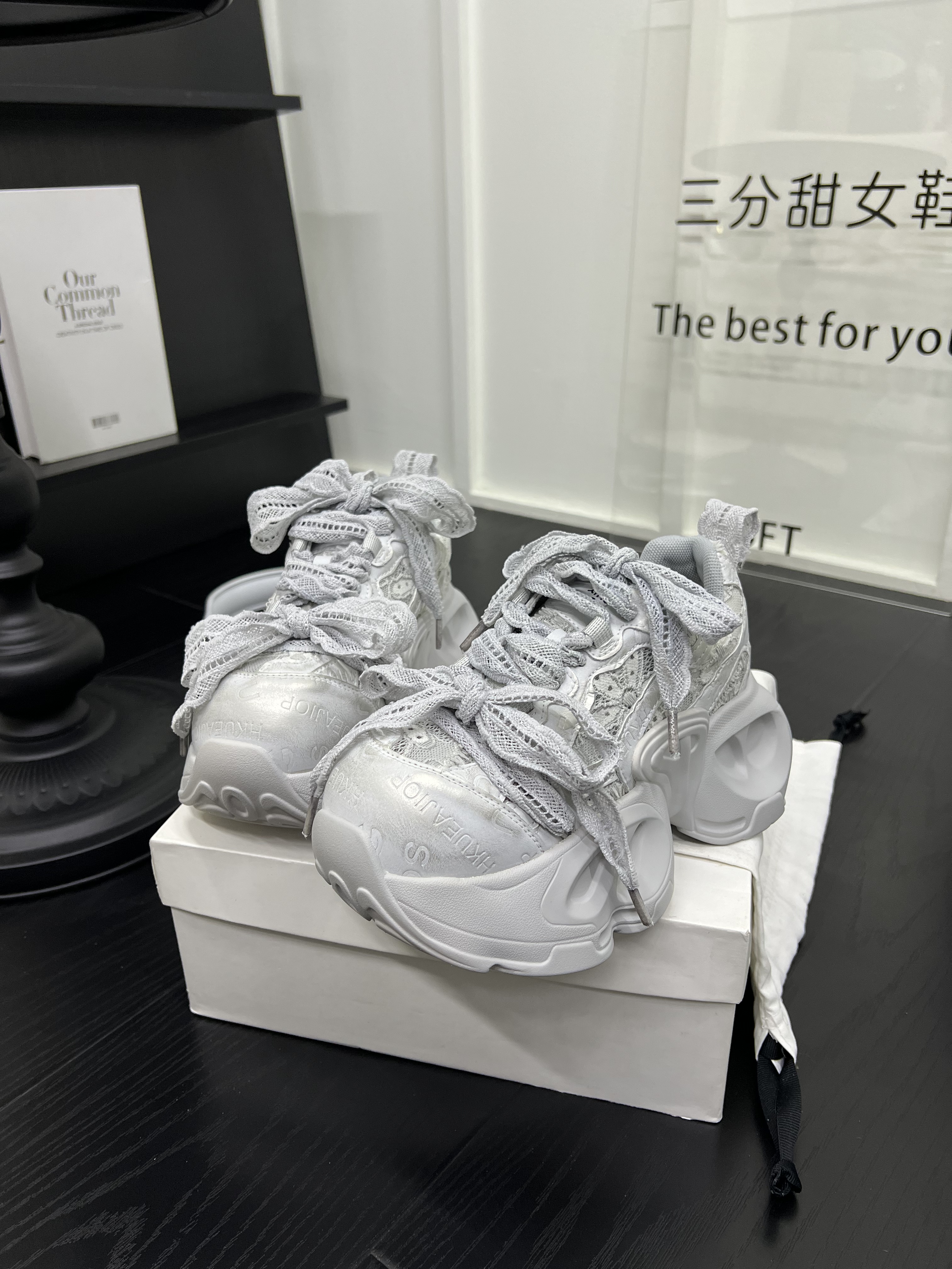 炸街蕾丝蝴蝶结厚底老爹鞋女2026春夏新款网面透气增高休闲运动鞋