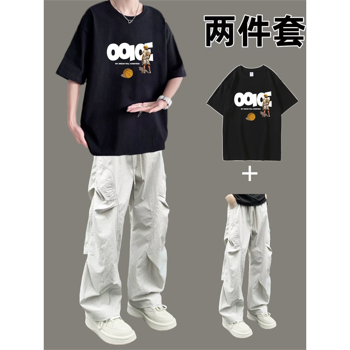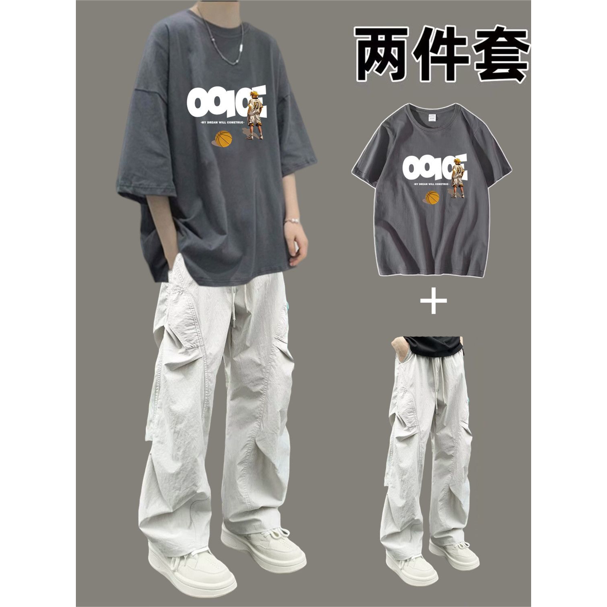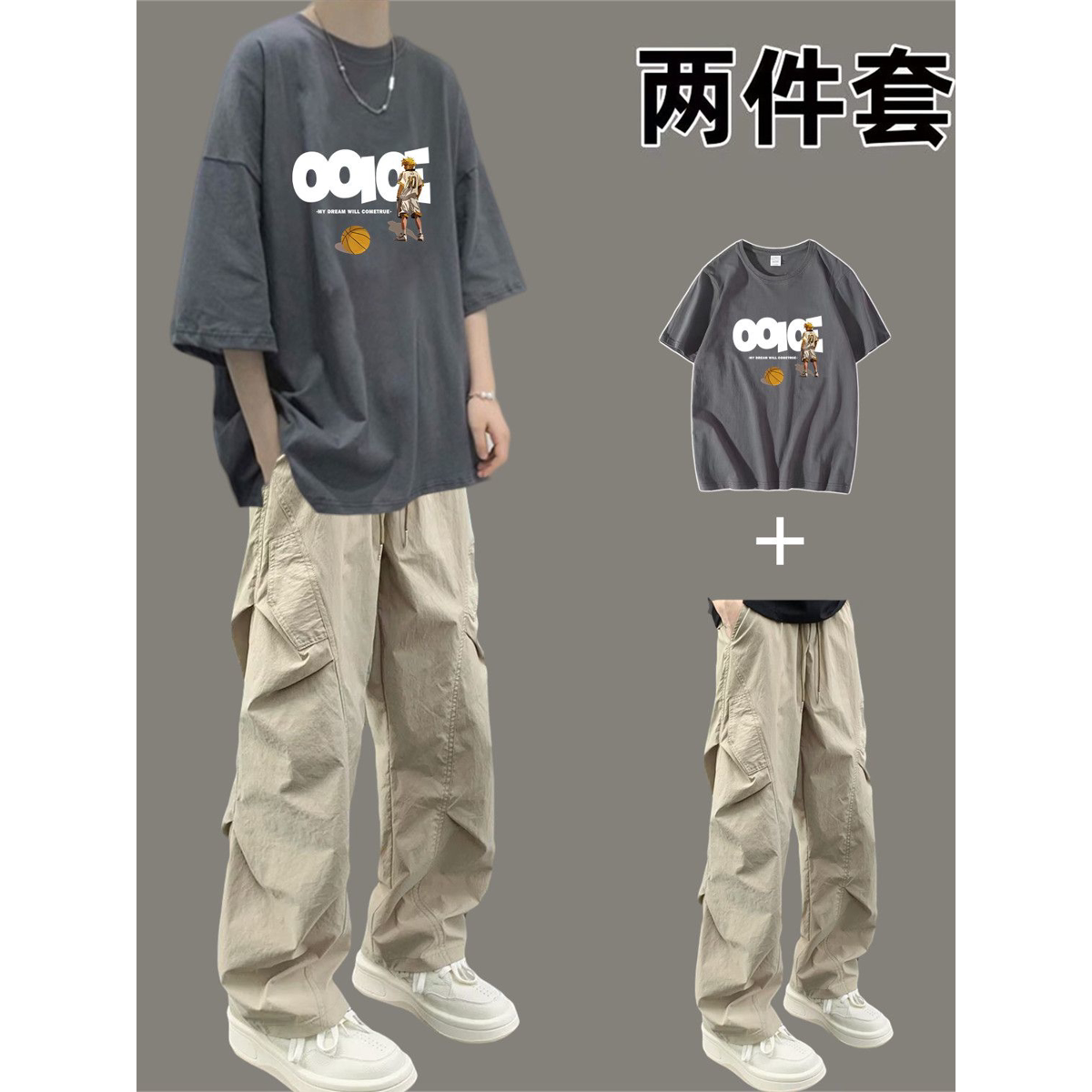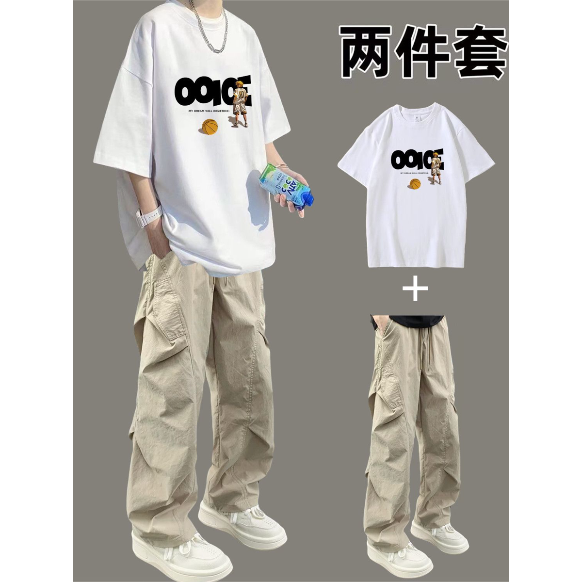 青少年男装帅气学生潮流套装男孩短袖T恤夏季新款潮牌宽松一整套