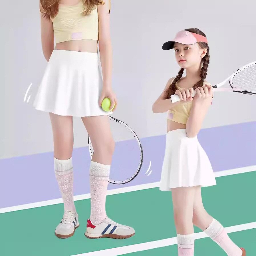 女童轻薄网球运动风半身裙裤2026夏薄新款速干防走光白色百褶短裙