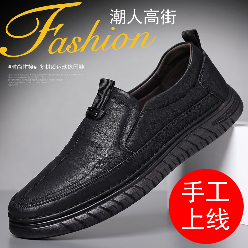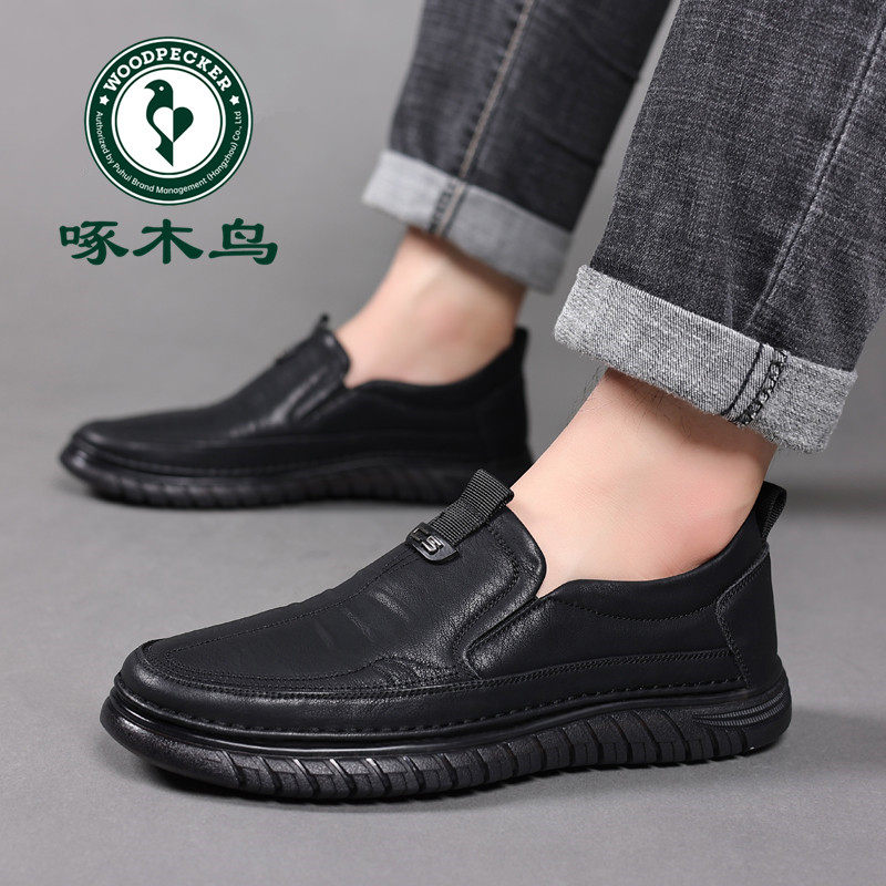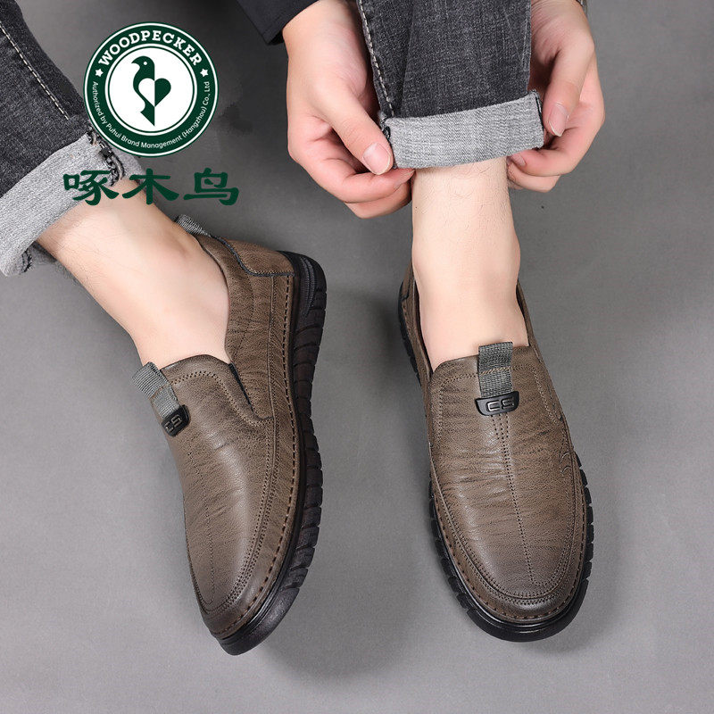 啄木鸟男鞋春季新款商务休闲一脚蹬皮鞋男士软皮软底牛筋底爸爸鞋
