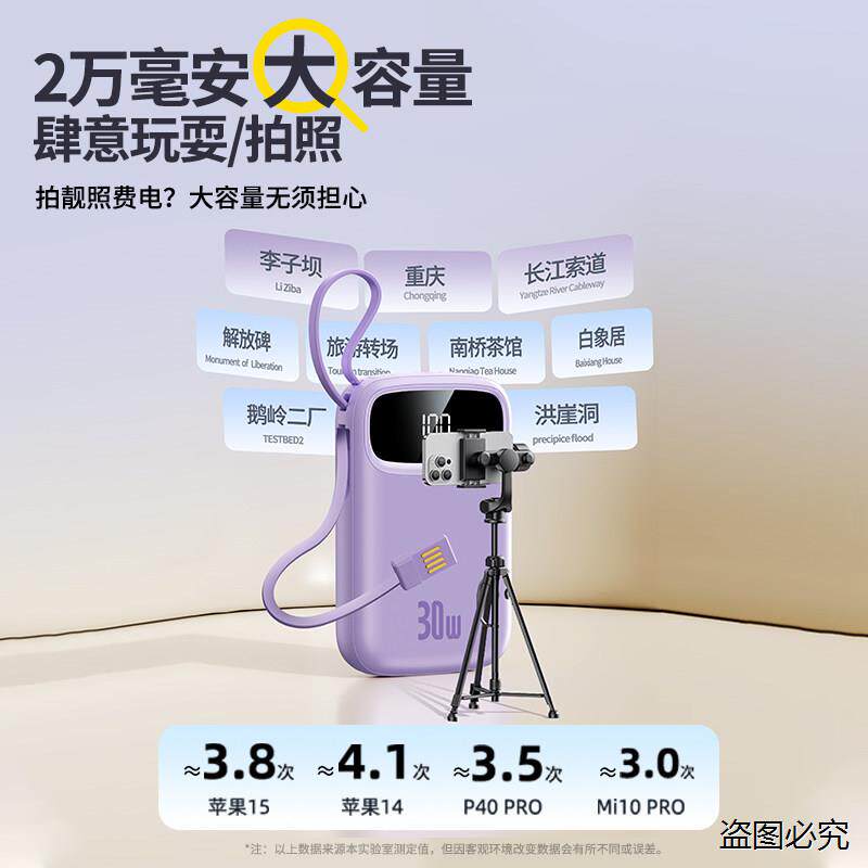 新款3c认证】充电宝可上飞机高铁火车20000毫安大容量自带线小巧