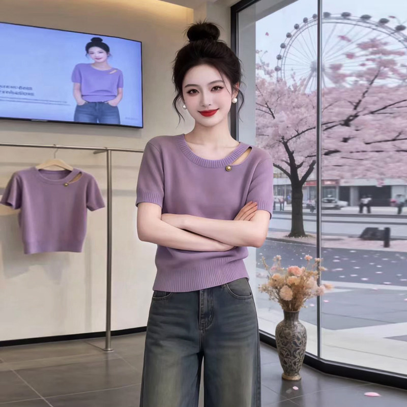 韩式少女风穿搭一整套装2026夏季新款针织衫阔腿牛仔裤子两件套装