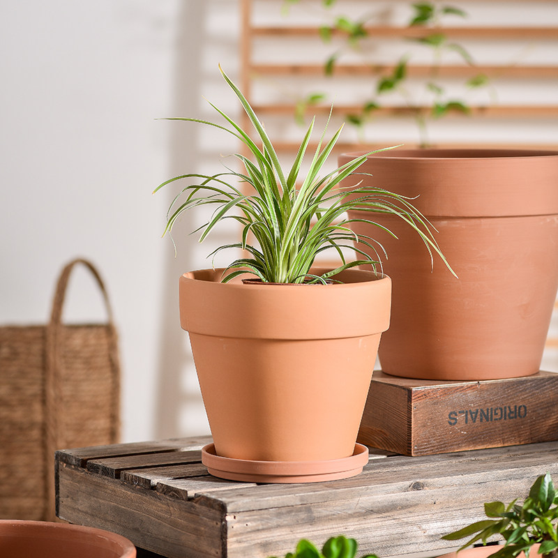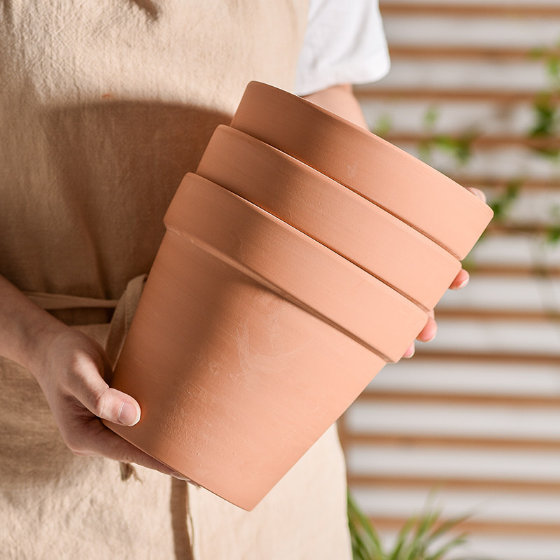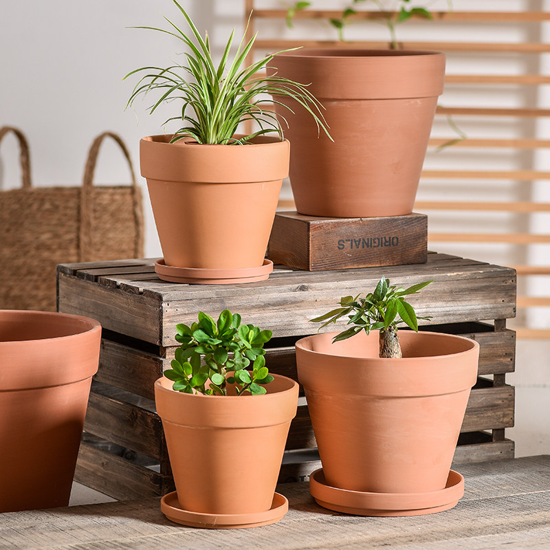 红陶花盆矮款大口径多肉透气特大绿植高圆粗陶透气盆套装清仓带盘