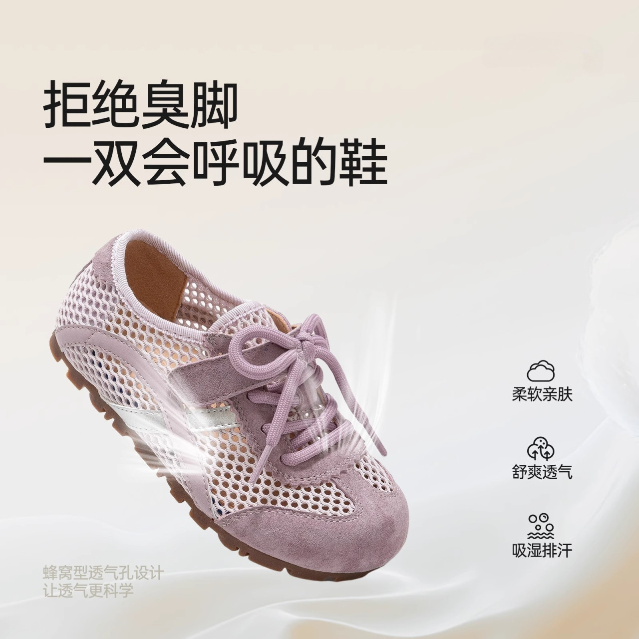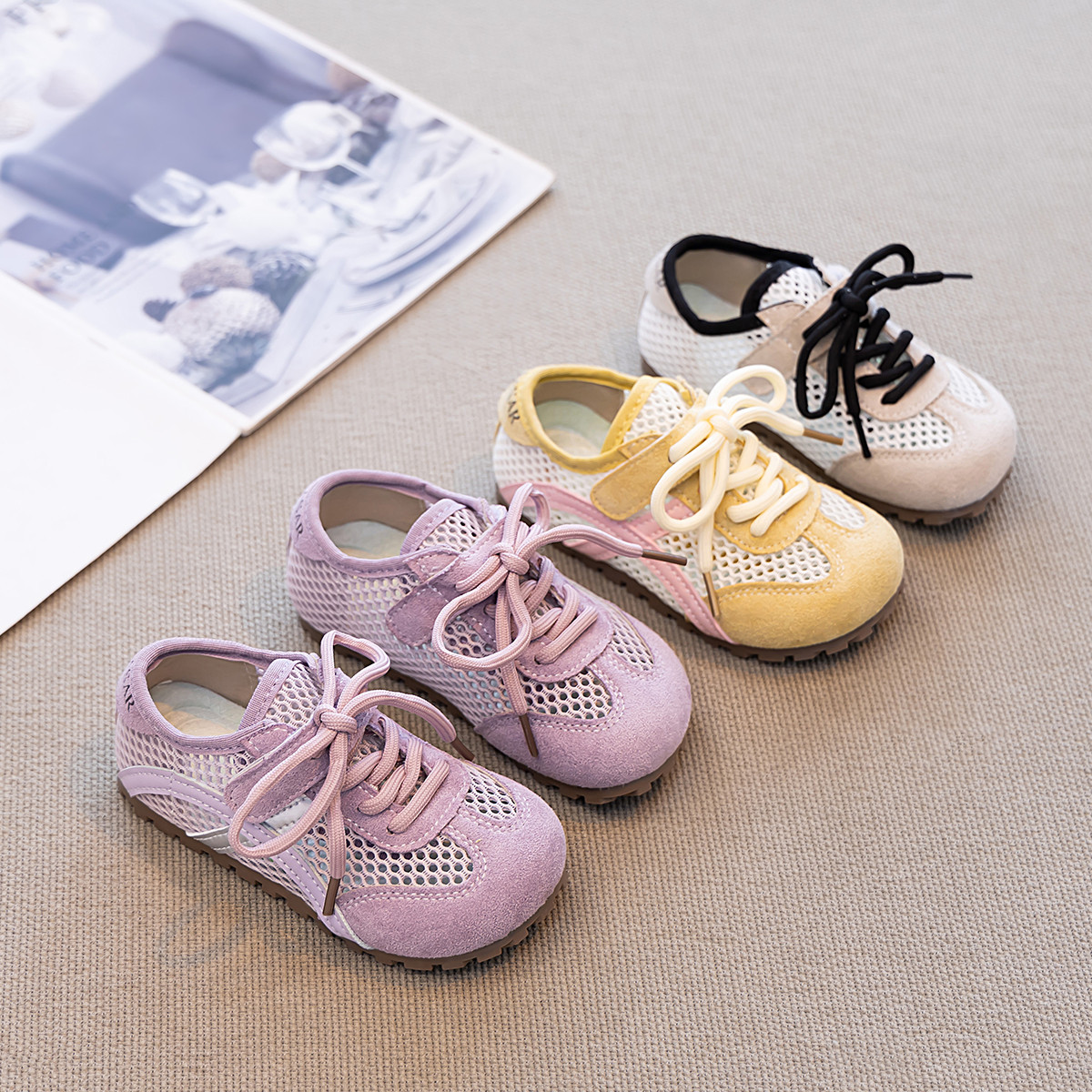 真皮女童板鞋夏季透气网面儿童德训鞋2026新款单网运动鞋紫色薄款