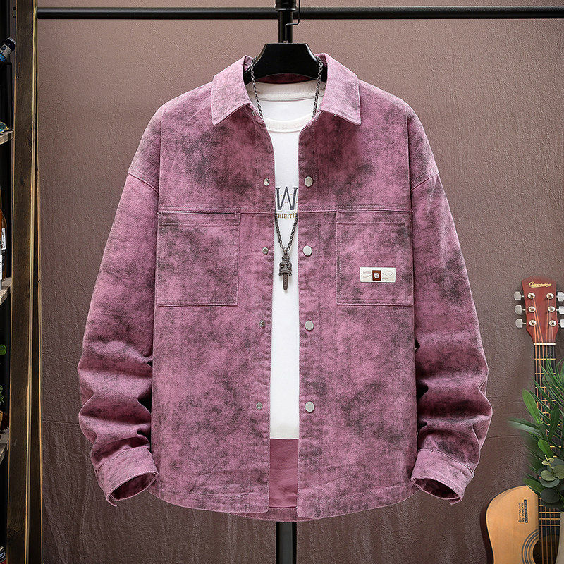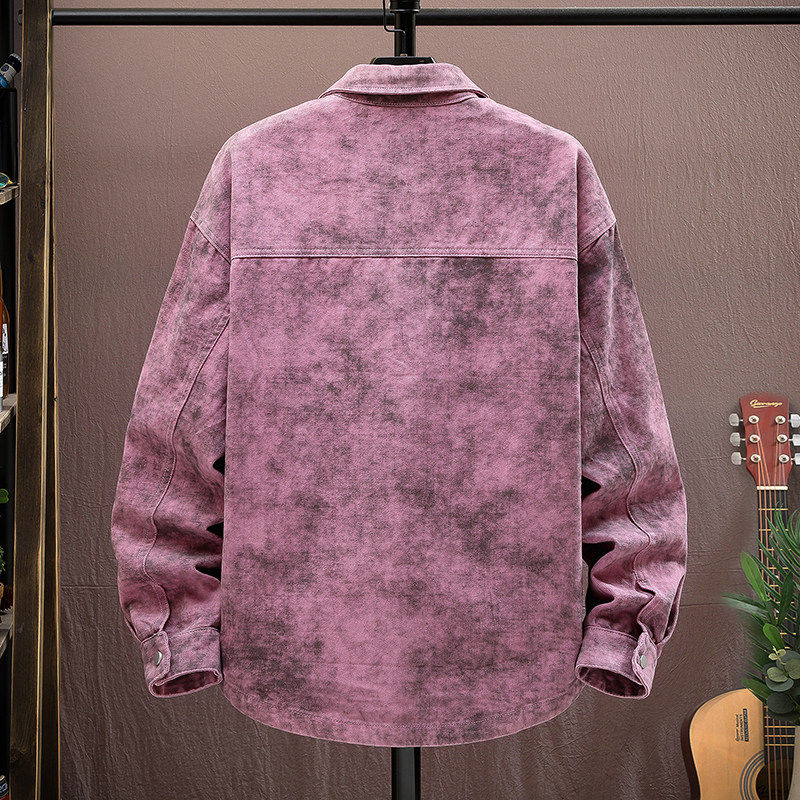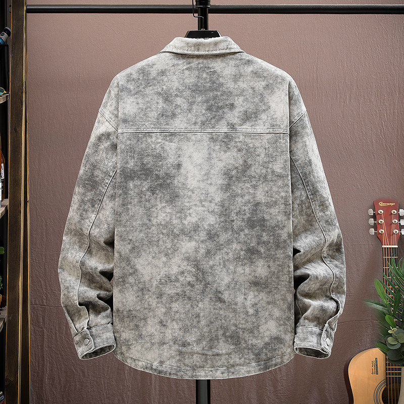 脏染牛仔衣服夹克外套男款潮流痞帅风2026新款春季上衣脏脏灰