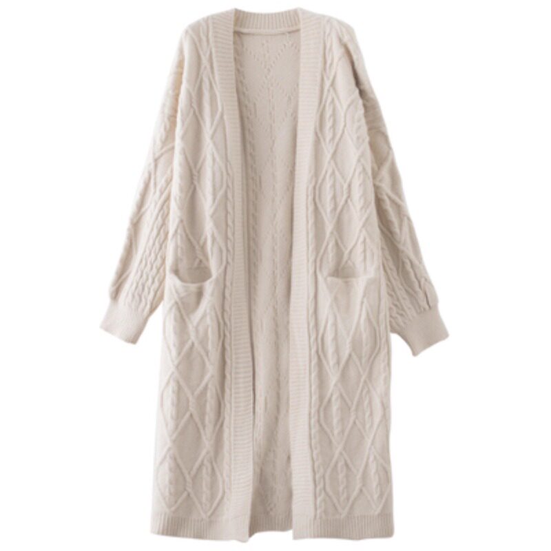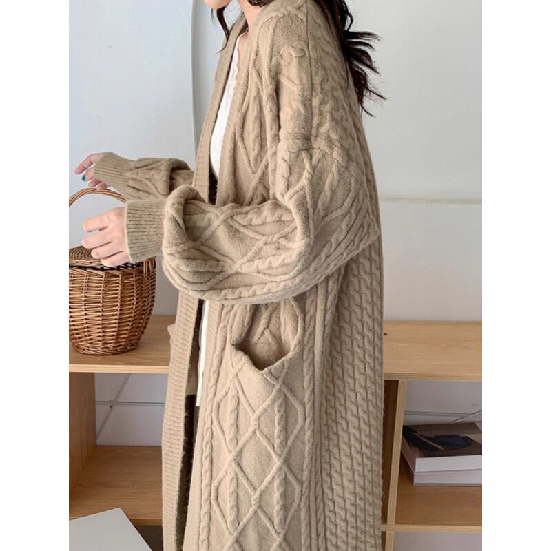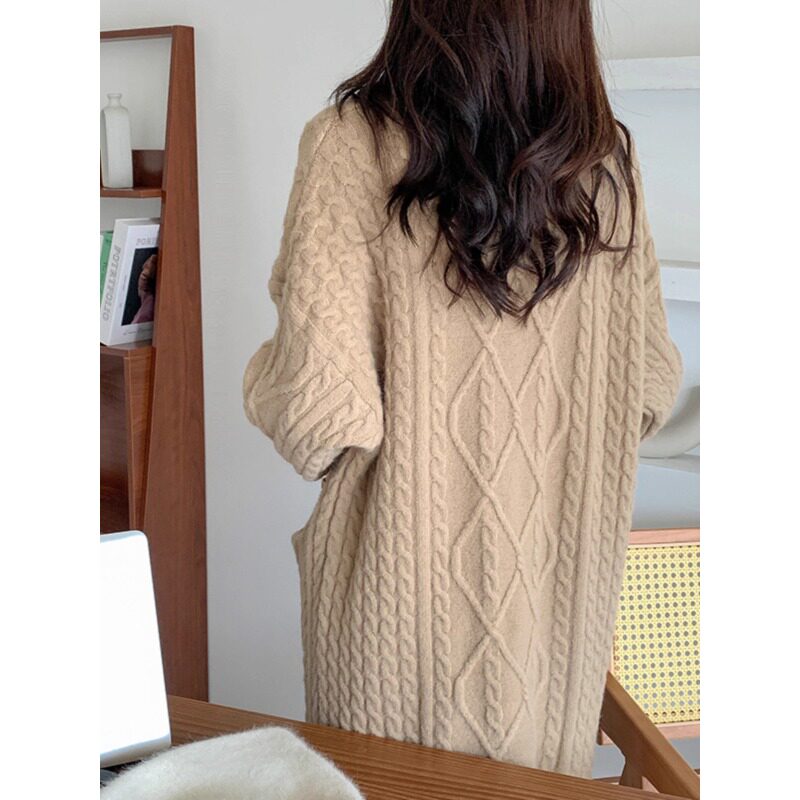 复古麻花温柔风中长款毛衣外套高级感长款过膝加厚针织开衫2025秋