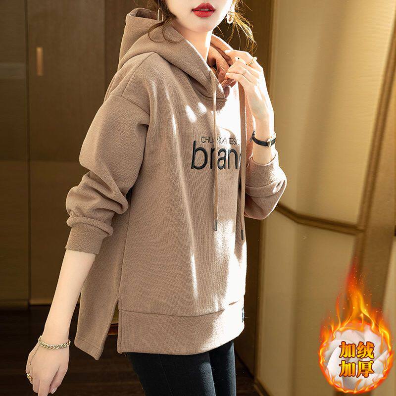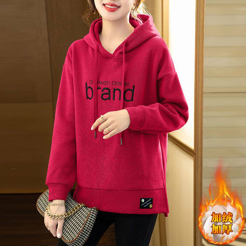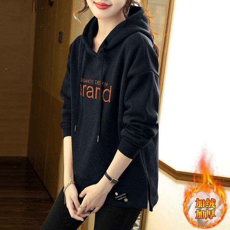 秋冬含棉加绒卫衣女款2026年新款爆款女连帽春秋加厚外套妈妈上衣