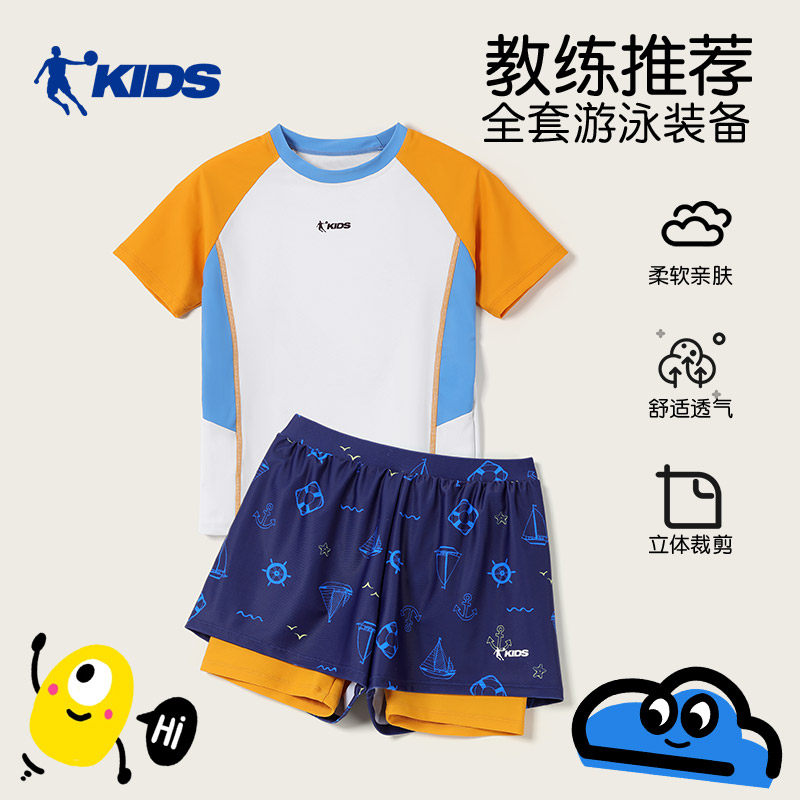 乔丹儿童泳衣男童青少年2026新款分体短袖短裤速干男孩游泳套装男