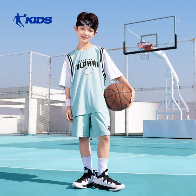 乔丹童装男童短袖套装2026夏季新款儿童运动套装2件套短裤T恤夏装