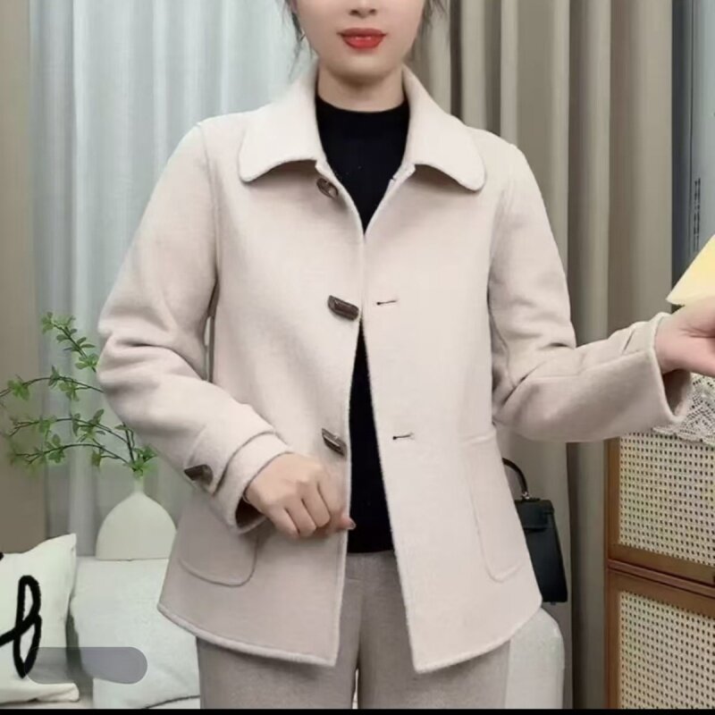 时尚百搭双面羊毛呢外套妈妈装秋冬新品2025双面绒大衣外套女短款