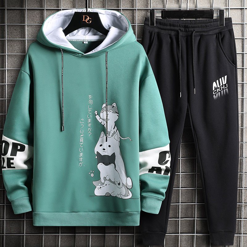 2026新款春季连帽卫衣男青少年外套初中高中学生套装帅气大童男装
