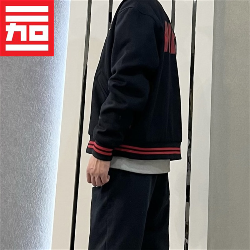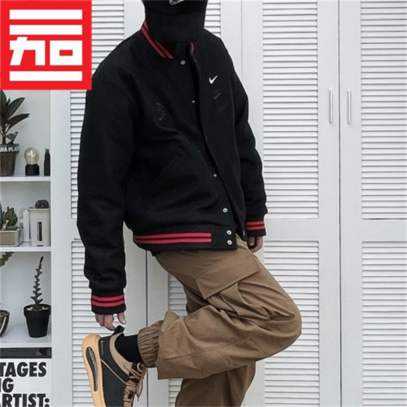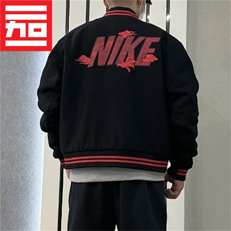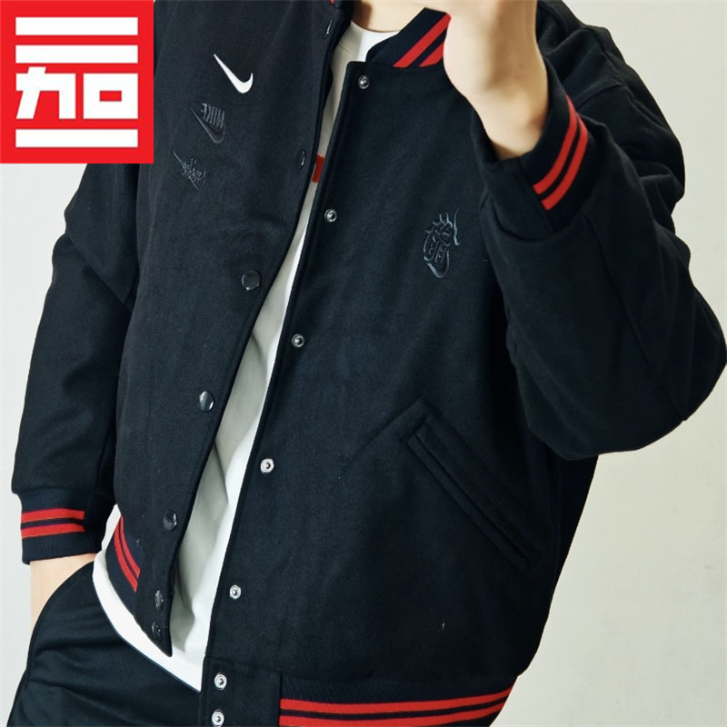 NIKE耐克男女款秋冬百搭休闲立领刺绣羊毛棒球夹克外套FZ6372-010