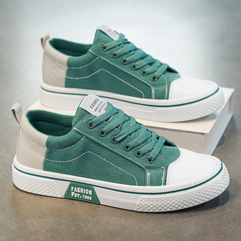 帆布男鞋2026新款春季休闲百搭低帮板鞋耐磨运动工作潮鞋黑色绿色