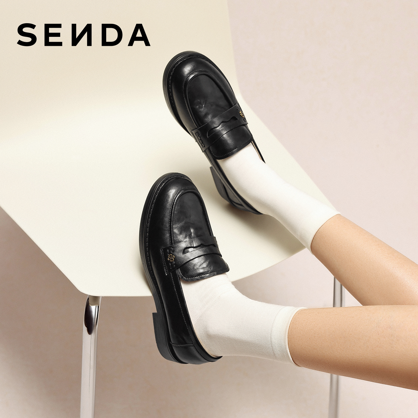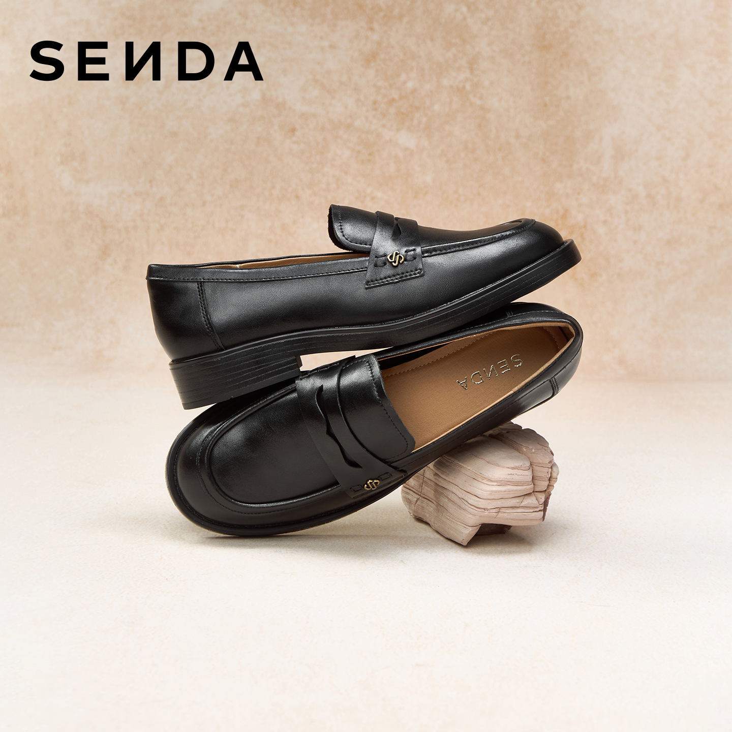 森达厚底增高乐福鞋女鞋26春季新款英伦风通勤舒适软底黑色单鞋