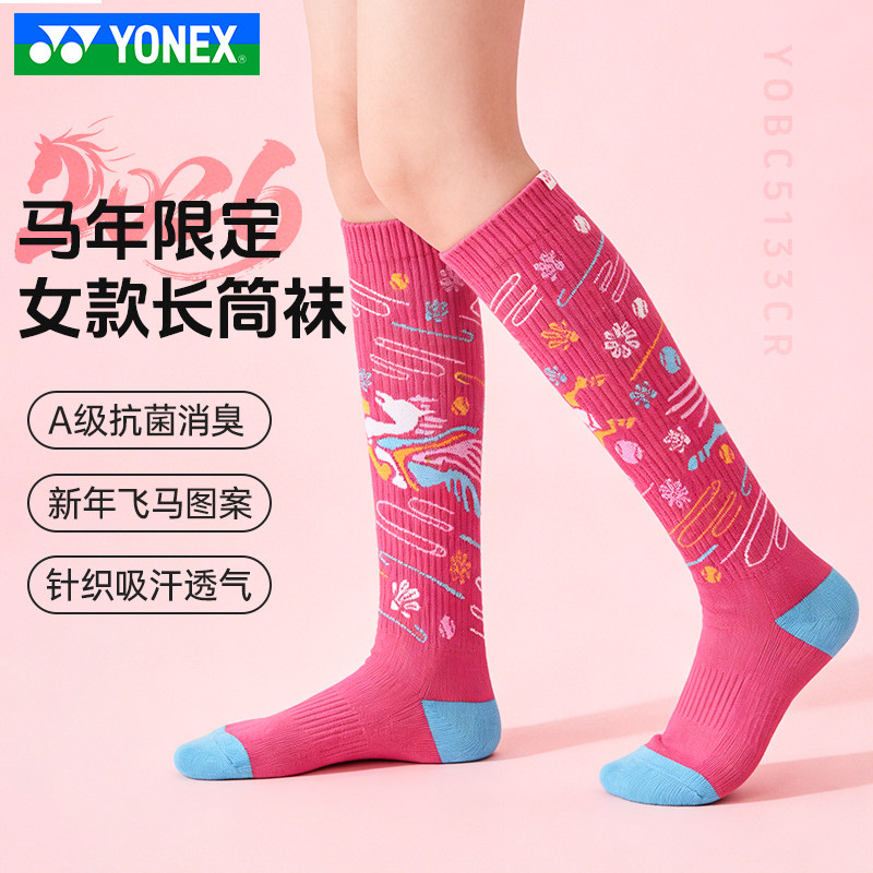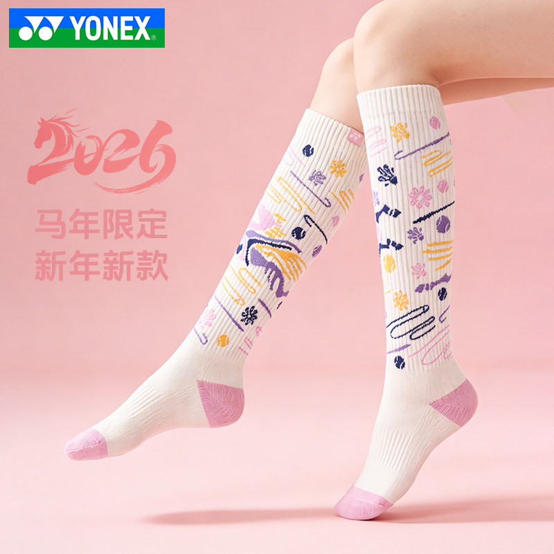 YONEX尤尼克斯羽毛球袜女款马年专属毛巾底长筒袜YOBC5133CR