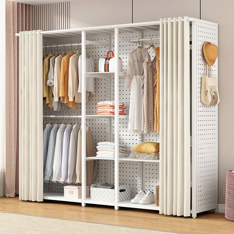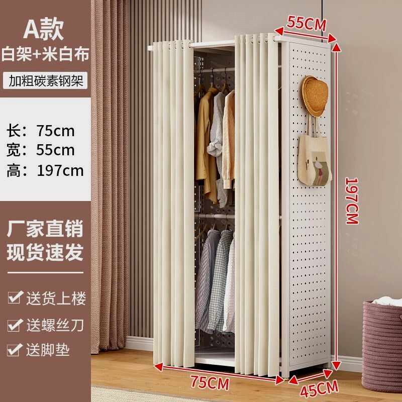 洞洞板简易e衣柜家用卧室金属货架铁艺开放式衣柜带防尘帘衣橱